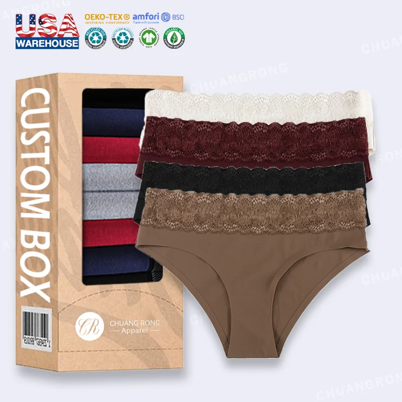 RTS OEM Wholesale Women Comfortable Daily Use Briefs Invisible Seamless Panties High Quality Spandex Women Lace Underwear