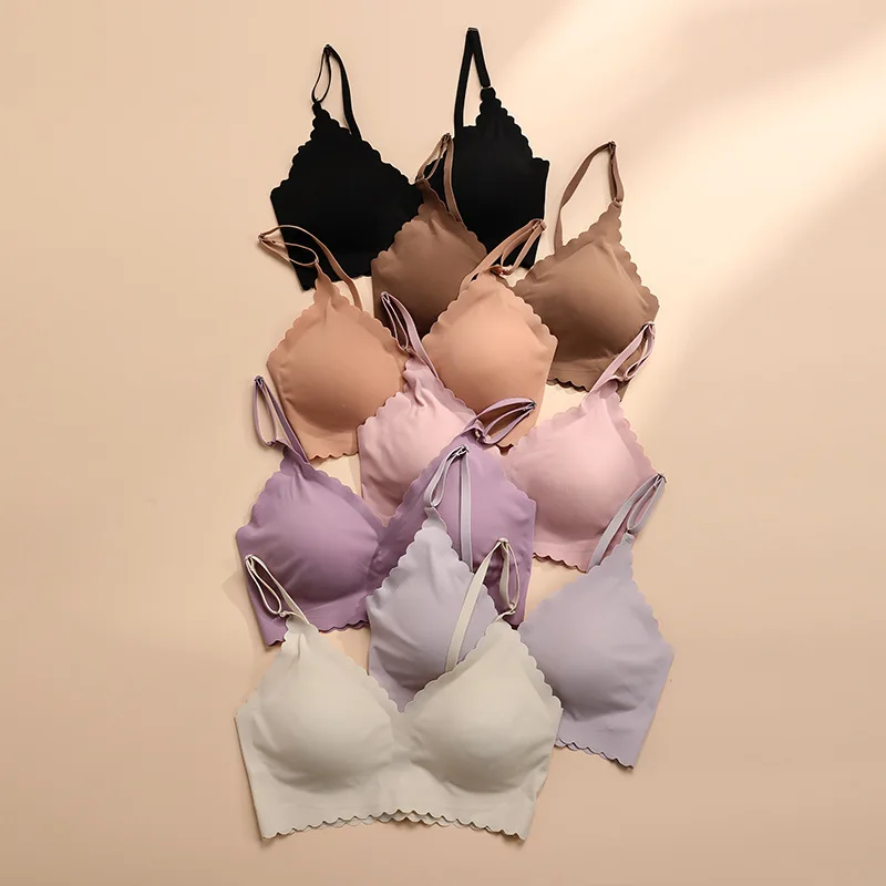 Hot Style No Wire Custom Full Cup Ladies Scalloped Bra Full Support Push up Seamless Skin-Friendly Sport Padded Bralettes