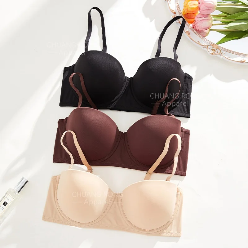 New Product Custom Full Cup Lady V Neck Support and Lift Push up Seamless Sport Padded Smoothing T Shirt Bra No Underwire
