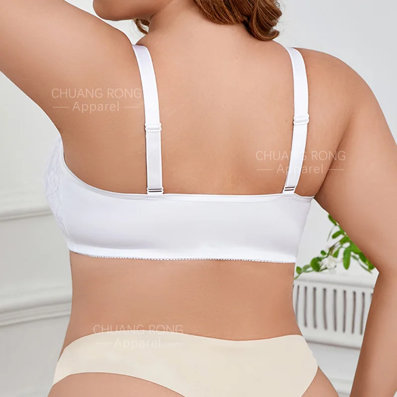 European American Plus Size Breathable Full Cup Wire-Free Padded Lace Bra Adjustable Front Buckle Thin Back Underwear