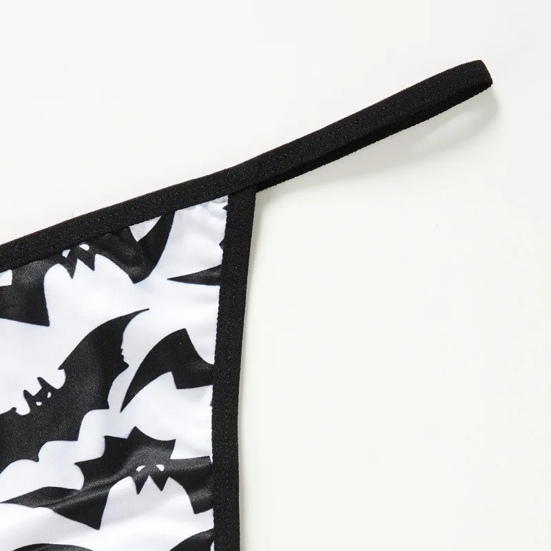 Halloween Pumpkin Letter Print Knitted Nylon Seamless Thong Women's Sexy Funny Thin Breathable Anti-bacterial Low-rise Panties