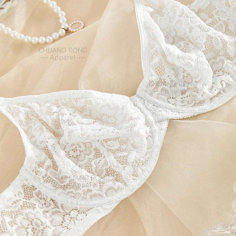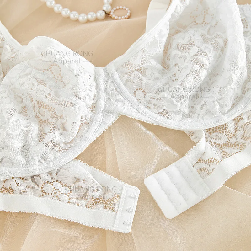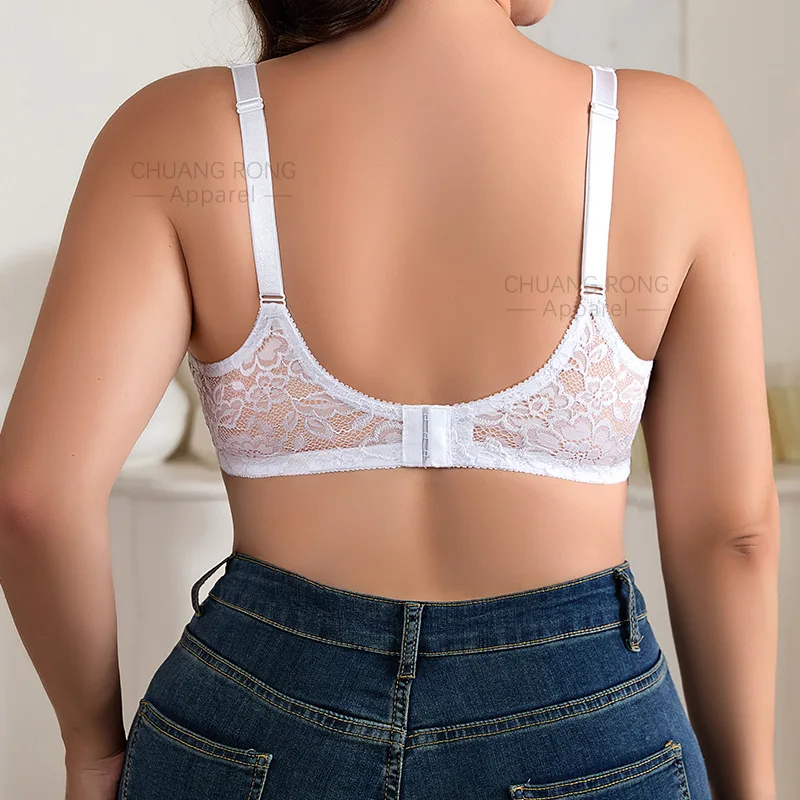 European American Women's Large Size Wire Free Sexy Lace Breathable Bra with 3/4 Cup Strappy Back Removable Pads