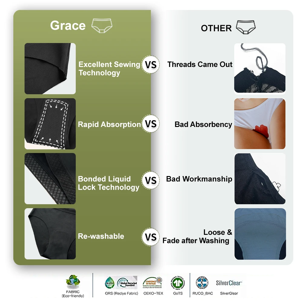 High Leak Proof Bamboo Period Panties Reusable Eco Friendly Underwear for Women Heavy Flow Days