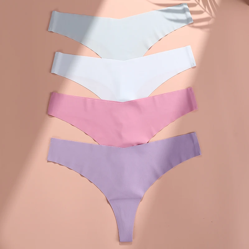 RTS Wholesales Pink Calcinha One Piece Panti Ice Silk Non-trace Underwear Tangas No Show Laser Cut Brief Seamless Panty Thong