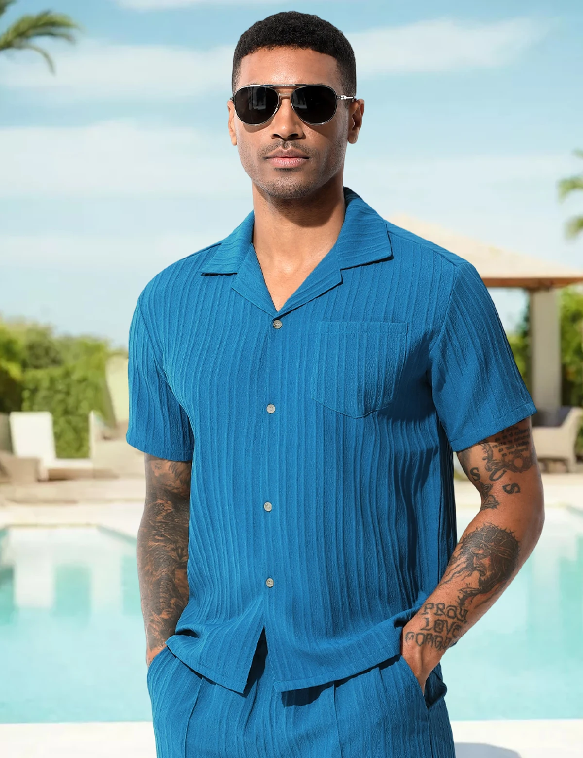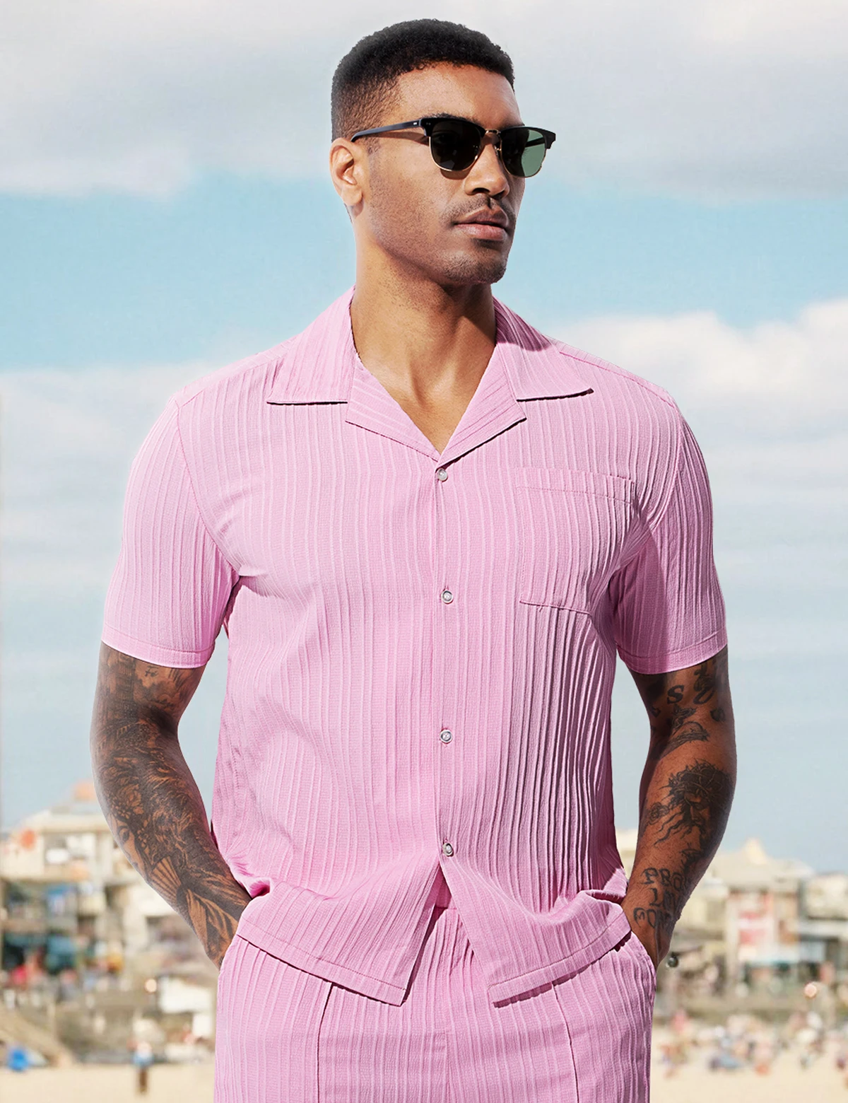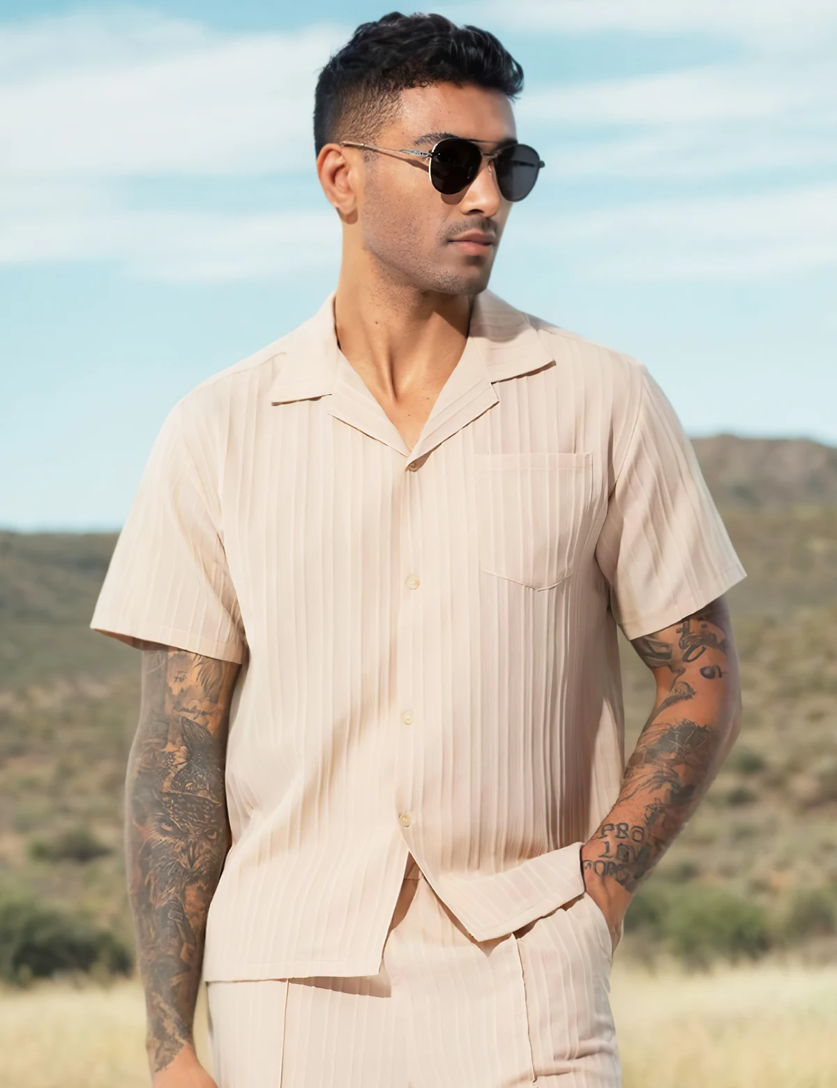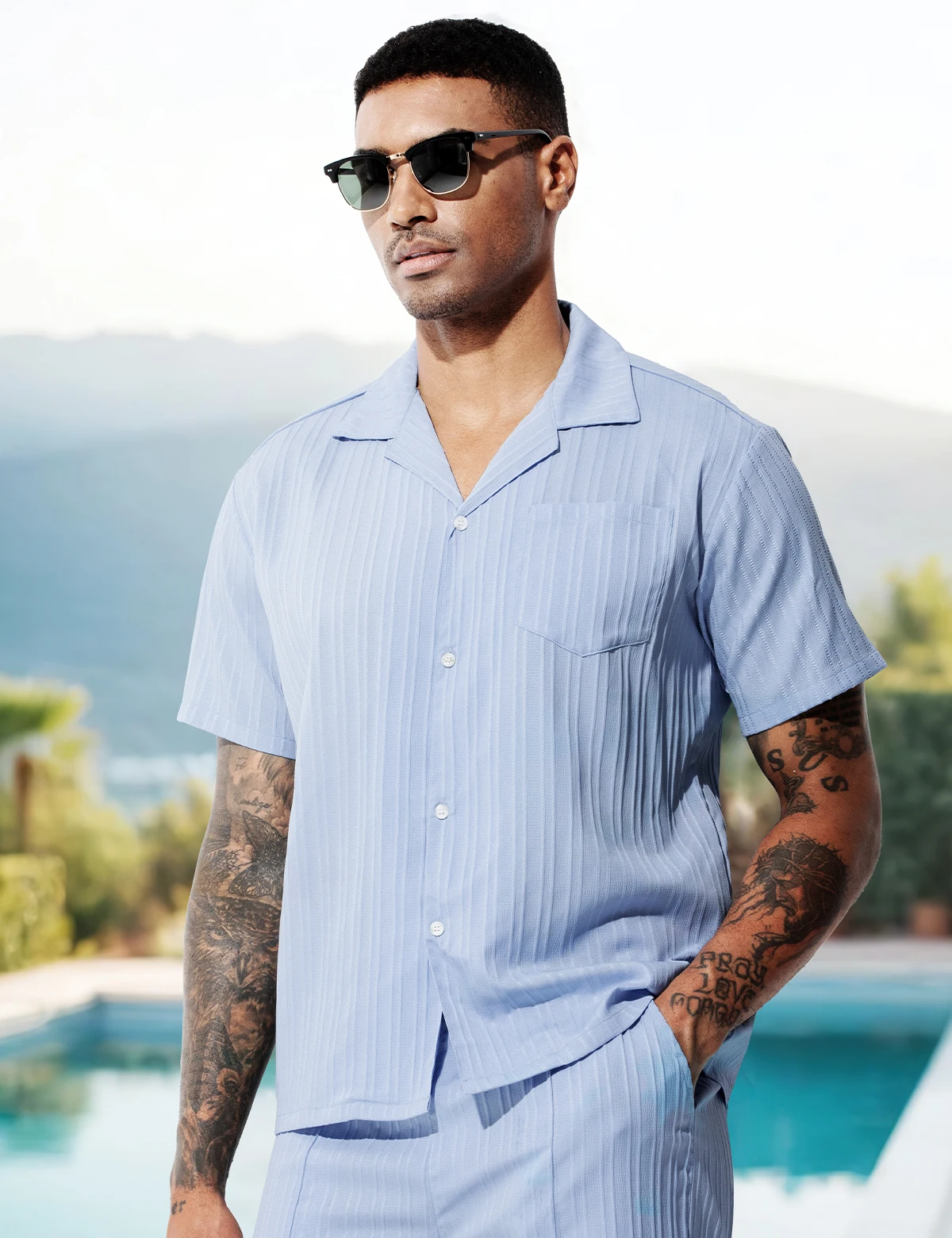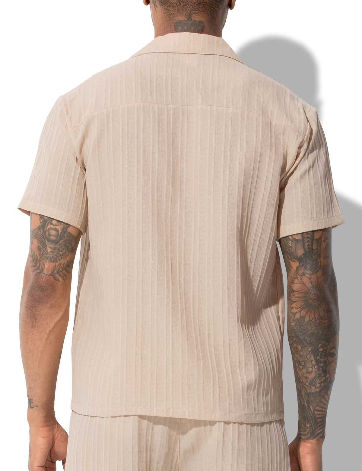 Wholesale OEM Wavy-like Texture Casual Men's Clothing Cuban Stylish Short Sleeve Shirts for Men