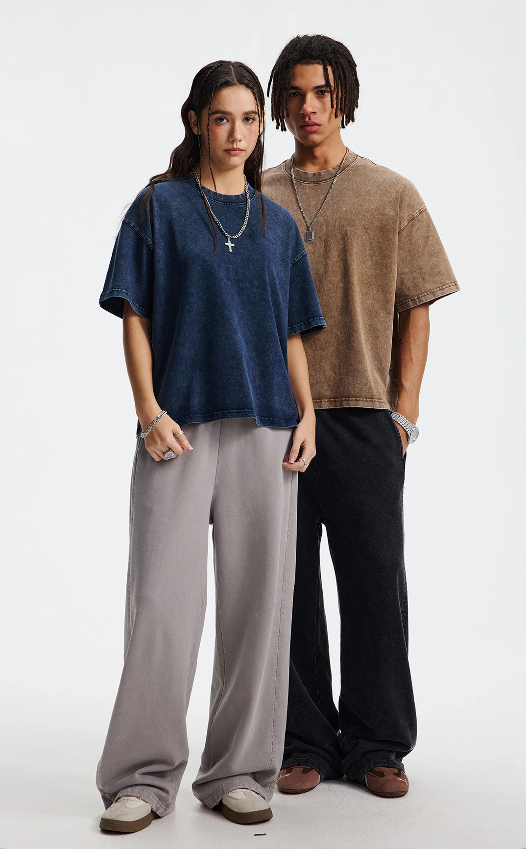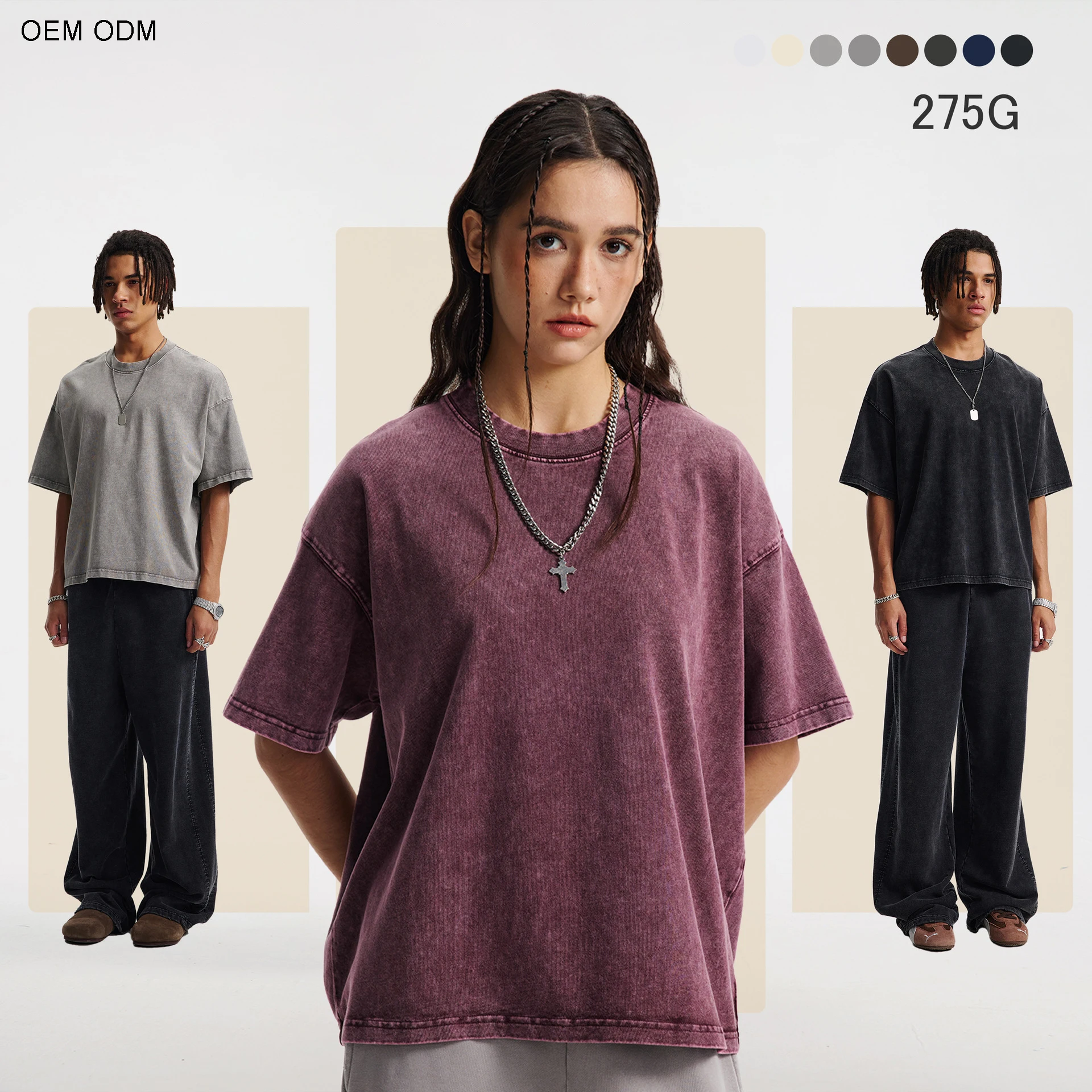 Trendy Loose Short Style Boxed Tee Shirt Unisex Vintage Snow Wash T Shirts 100% Cotton Men's Short Sleeve Distressed T-shirt
