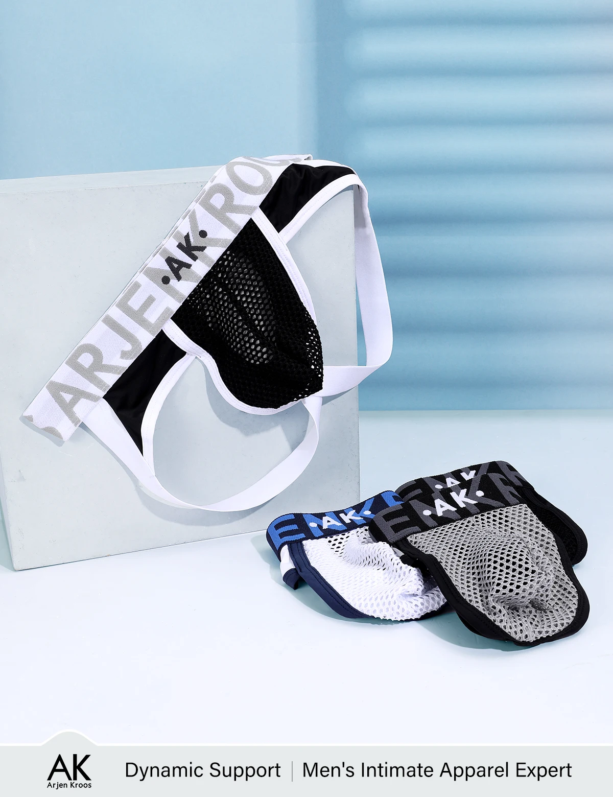Custom Men' s Jockstraps Custom logo Mens logo De Erkekler Jockstrap Uomo Harness with Strap Transparent Sexy Mesh Underwear