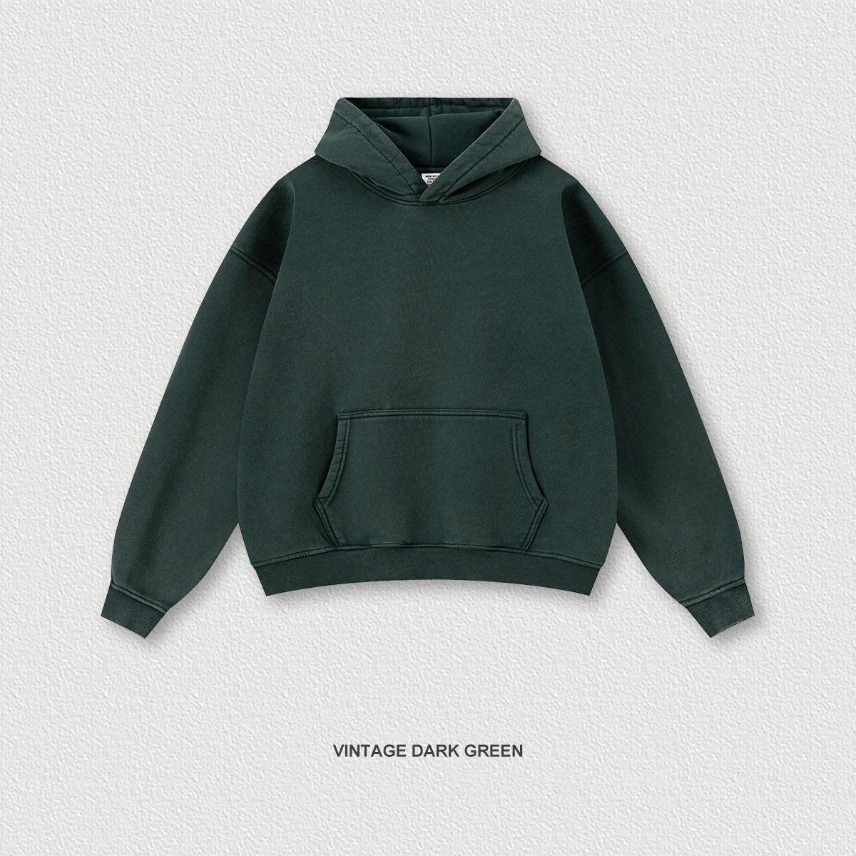 OEM ODM Winter 400G Oversized Streetwear Solid Color Mens Hoodies Loose Distressed Custom Vintage Washed Pullover Hoodie for Men