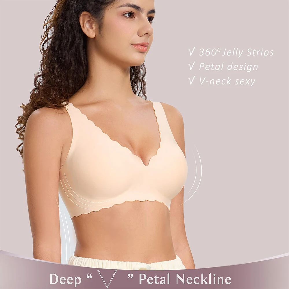 New Trend Wireless Bra for Women Custom Full Cup Ladies V Neck Support Push up Bralettes Seamless Padded Scalloped Tank Bras