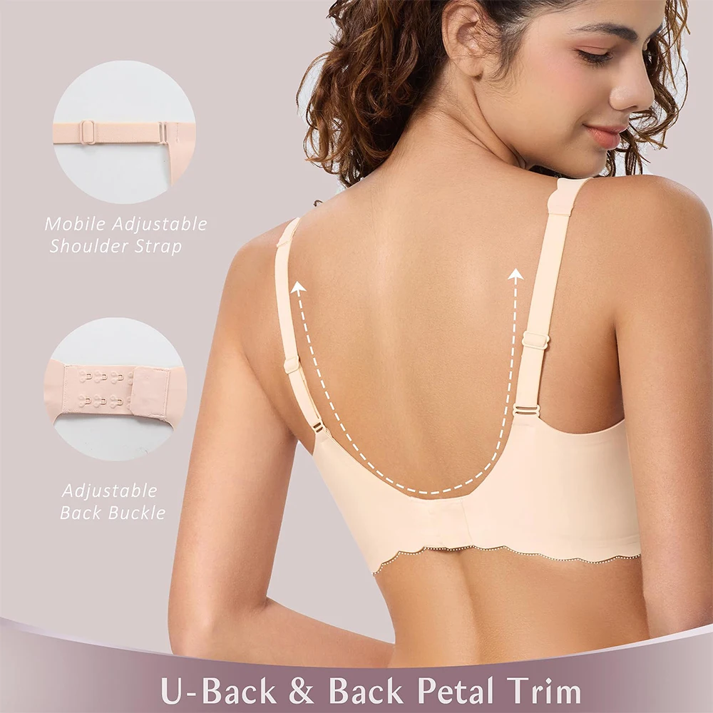 Customized Logo Seamless Plus Size Wireless Bra for Women Push up Bralettes Ladies V Neck Full Cup Padded Scalloped Bras