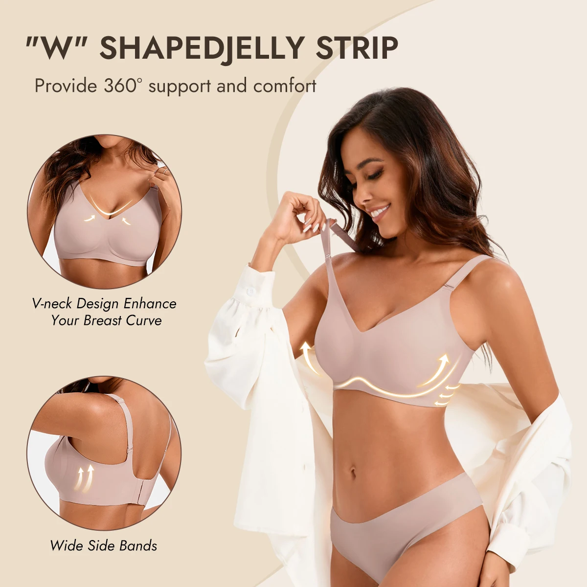 New Product Custom Full Cup Lady V Neck Support and Lift Push up Seamless Sport Padded Smoothing T Shirt Bra No Underwire