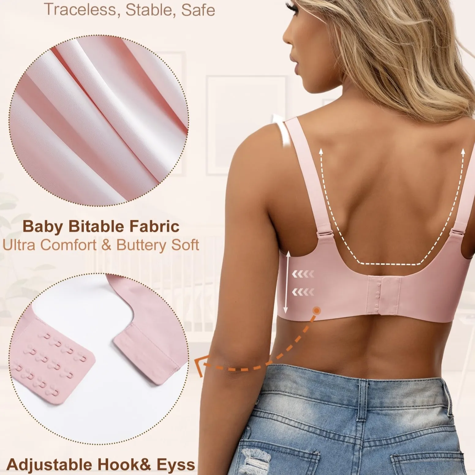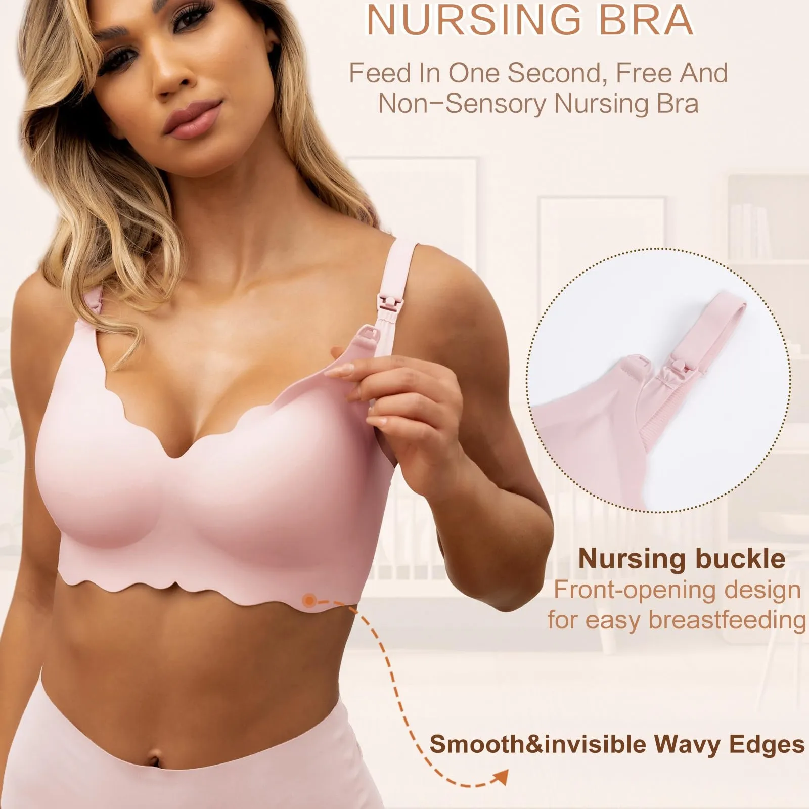 Hot Sale No Wire Custom Bralettes Maternity Nursing Bra Plus Size Supportive Push up Seamless Breathable Padded Scalloped Bra