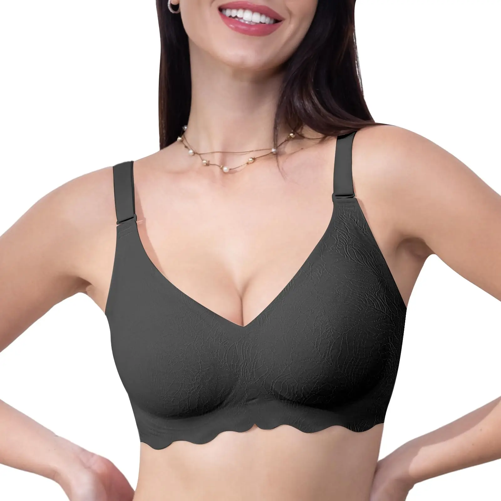 New Trend Wireless Bra for Women Custom Full Cup Ladies V Neck Support Push up Bralettes Seamless Padded Scalloped Tank Bras