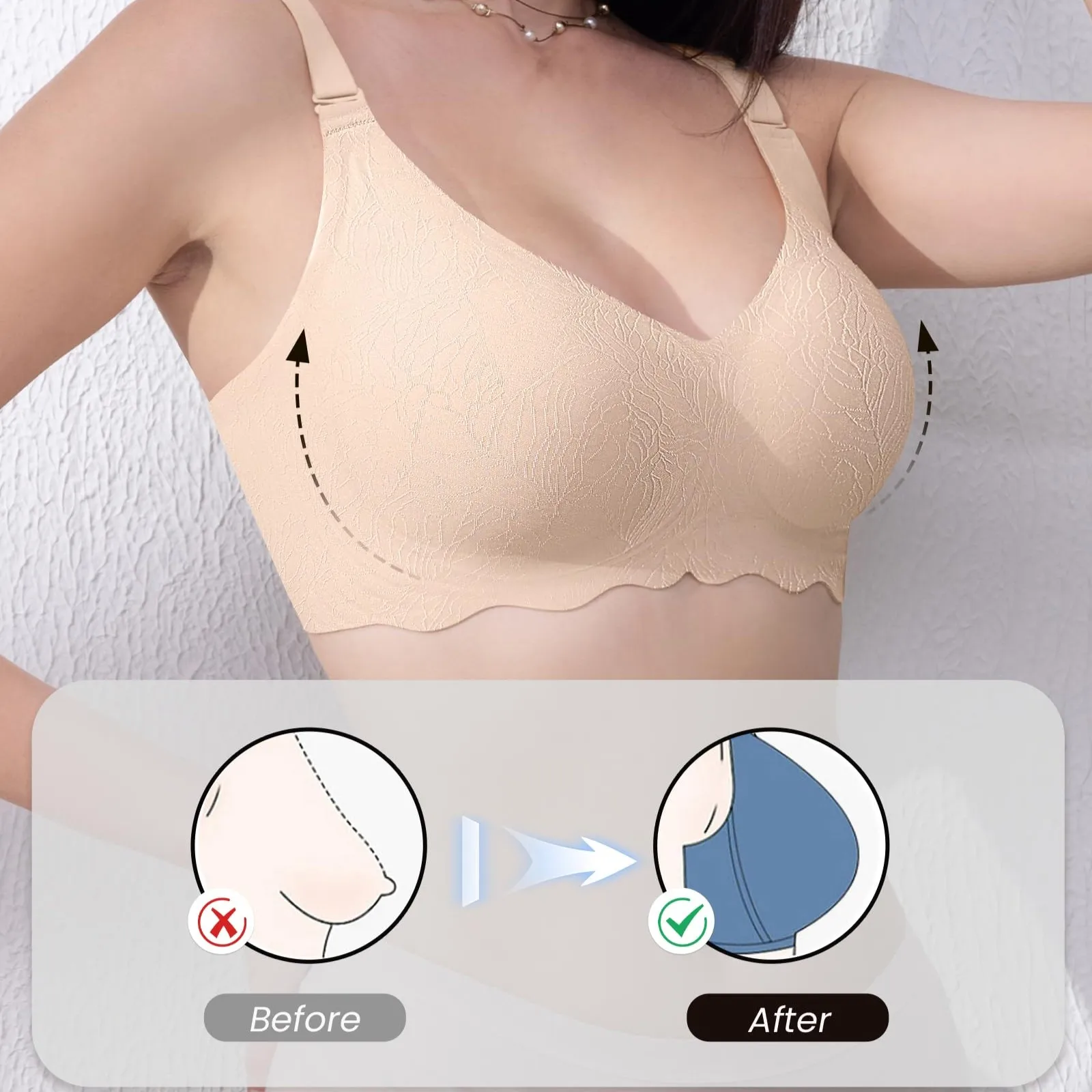 Customized Logo Seamless Plus Size Wireless Bra for Women Push up Bralettes Ladies V Neck Full Cup Padded Scalloped Bras