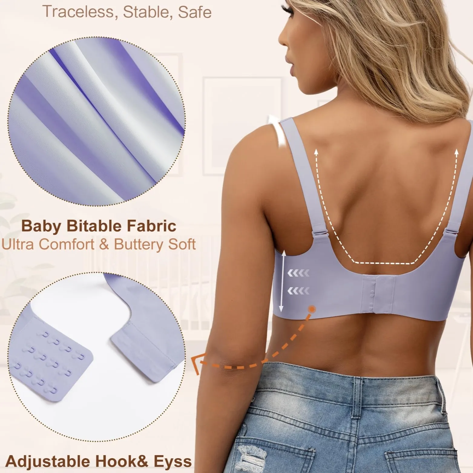High Quality Wireless Bra for Women Custom Full Coverage Ladies V Neck Support Push up Seamless Comfortable Tank Bra