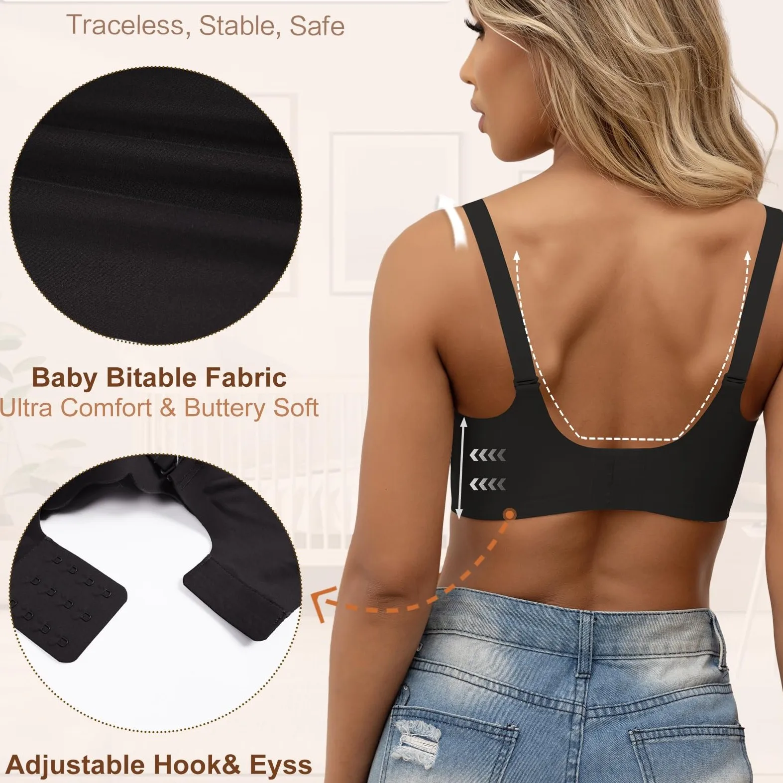 High Quality Wireless Bra for Women Custom Full Coverage Ladies V Neck Support Push up Seamless Comfortable Tank Bra