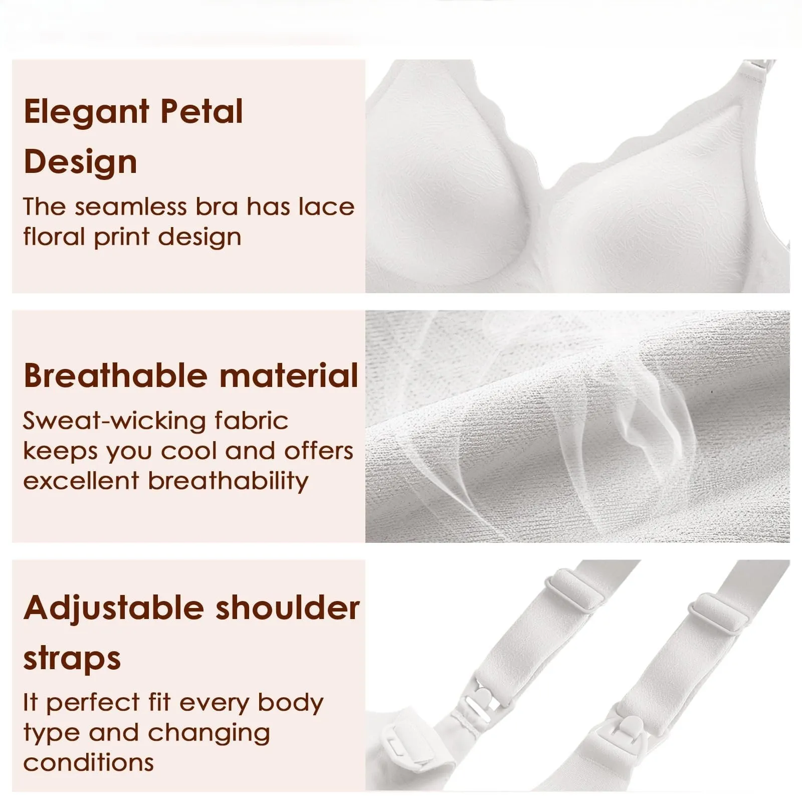 Customized Logo Seamless Plus Size Wireless Bra for Women Push up Bralettes Ladies V Neck Full Cup Padded Scalloped Bras
