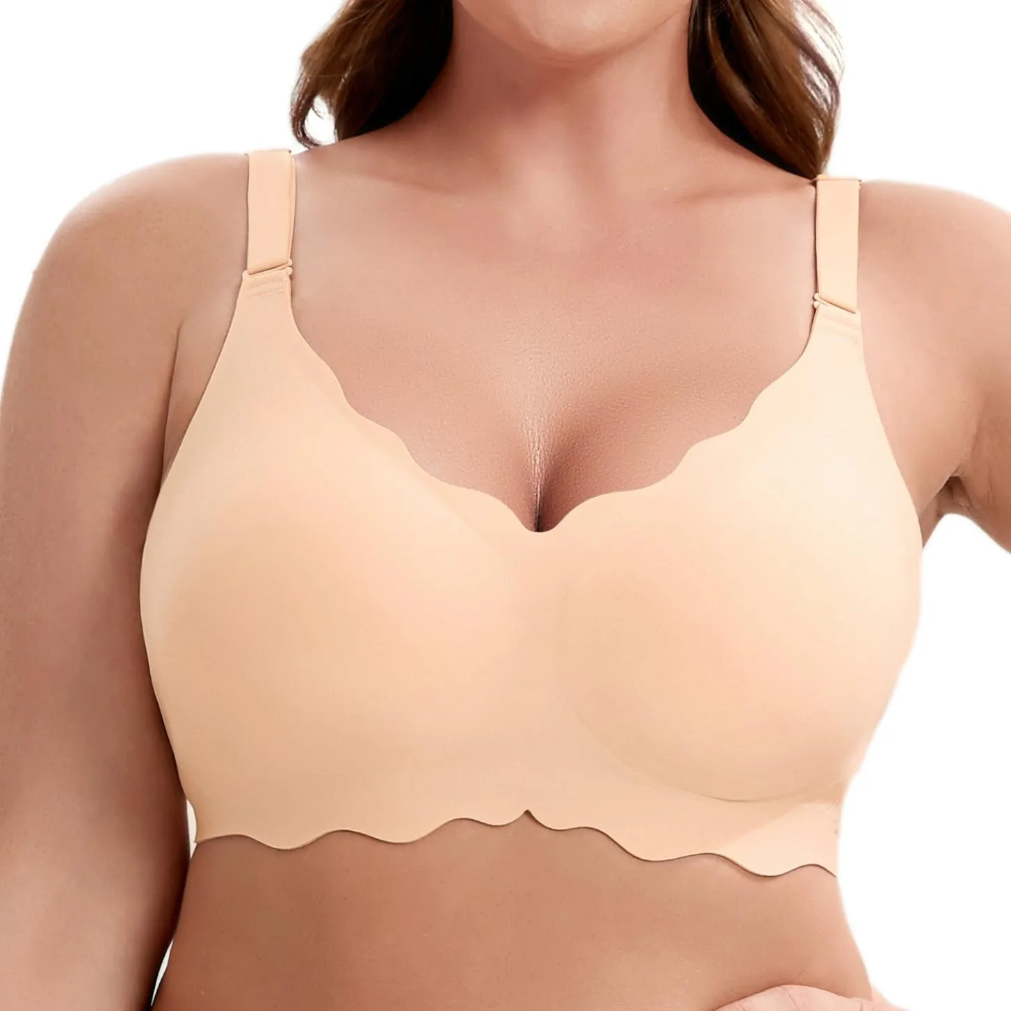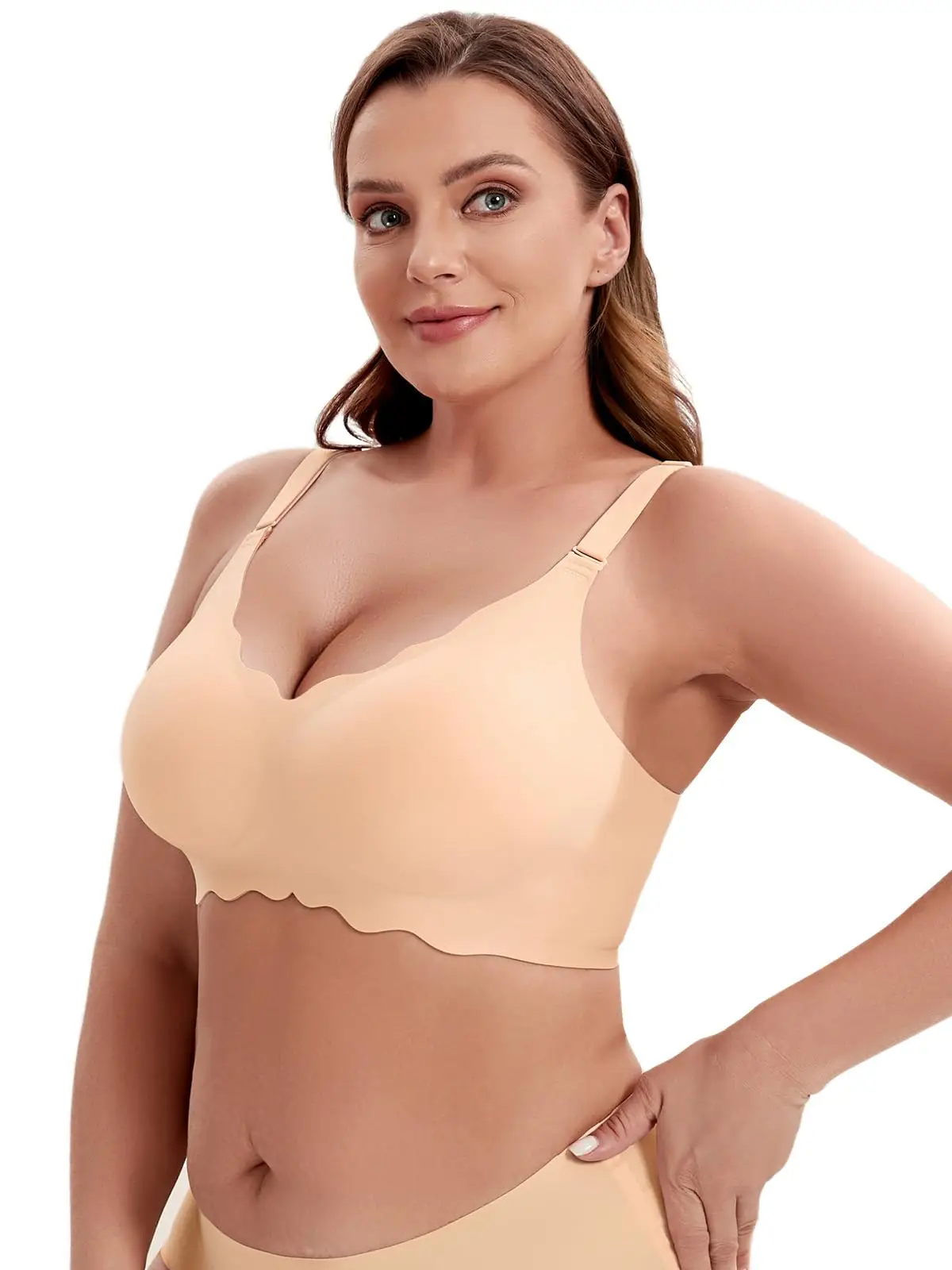 Customized Logo Seamless Plus Size Wireless Bra for Women Push up Bralettes Ladies V Neck Full Cup Padded Scalloped Bras
