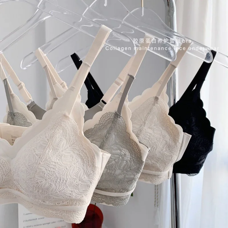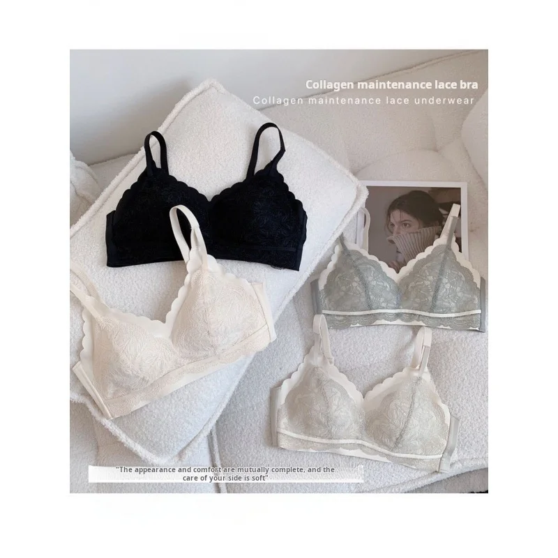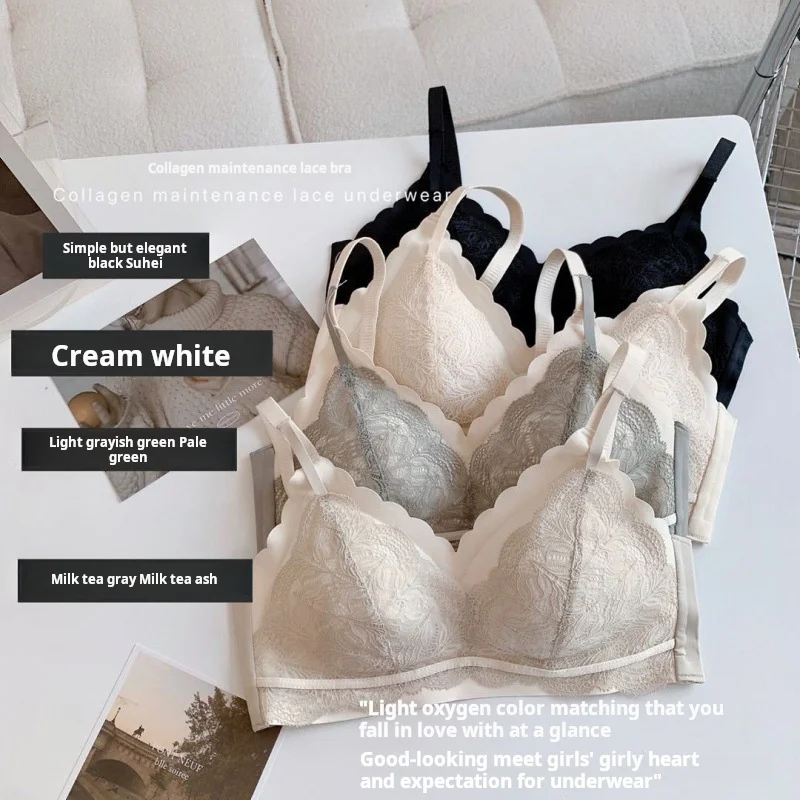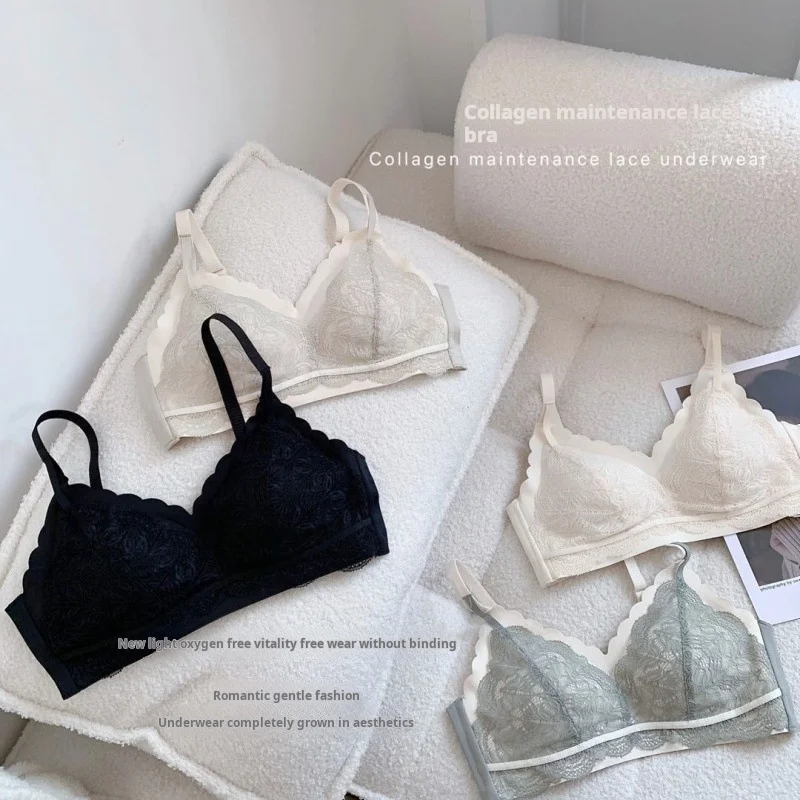 Lace-Latex Breathable Push-Up Wire-Free Thin Woven Seamless One-piece Bra for Women with Collagen Maintenance Panties & BH