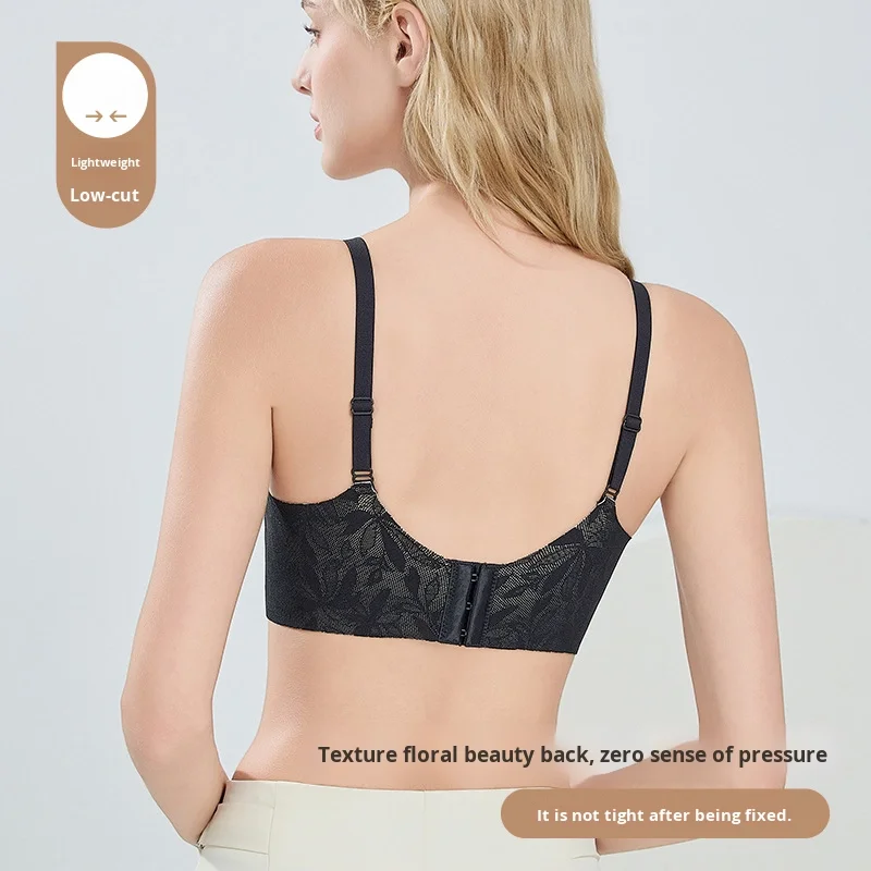 Customized Logo Seamless Plus Size Wireless Bra for Women Push up Bralettes Ladies V Neck Full Cup Padded Scalloped Bras