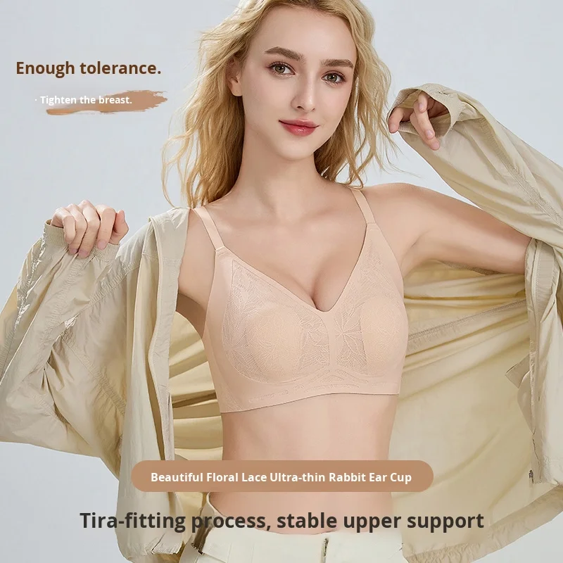 High Quality Summer Seamless Women's Bra Thin Style Bunny Ears Push-Up Crystal Cup Knitted Adjustable Straps for Large Bust