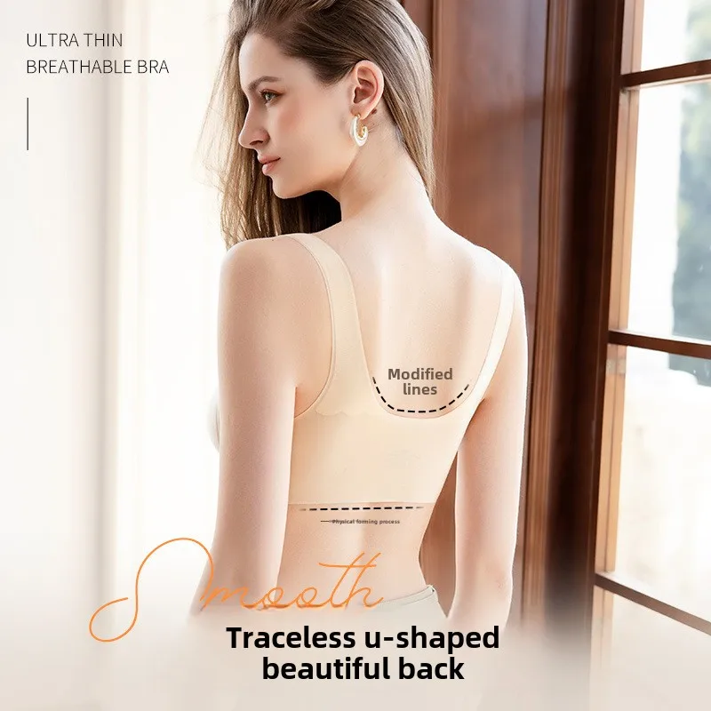 Ultra-Thin Summer Seamless Bras Beauty Back Sleep Bra with Comfortable Ice Silk Wire-Free Plus Size Bra for Sleep