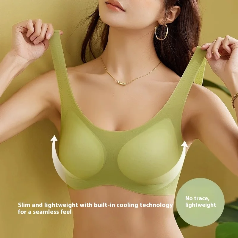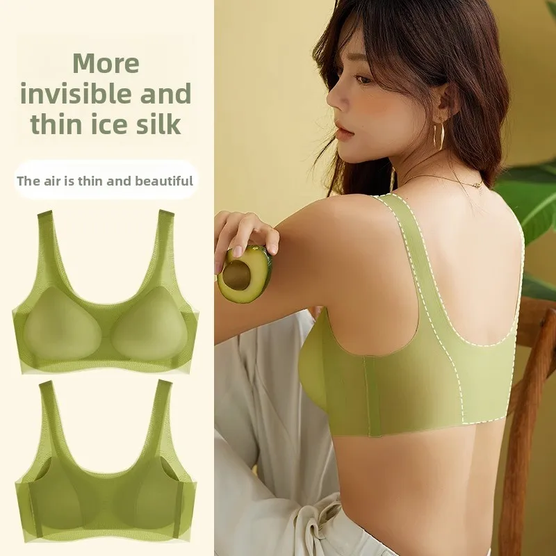 High Quality Women's Summer Tank Top Bra Silk Seamless Push-up Adjustable Soft Thin Breathable Solid Sleeping Bra Wire Free