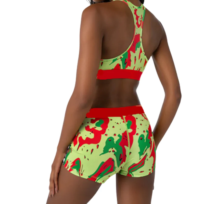 New Hot Sublimation Print High Waist Fitness Gym Sport Bra and Shorts Yoga Set Women Tracksuit