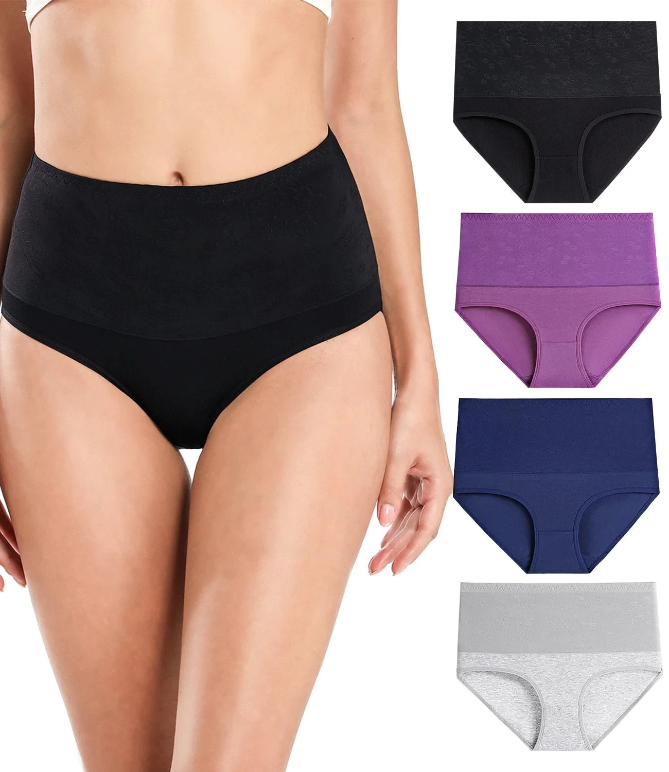 Womens High Waist Underwear Girl Breathable Organic Cotton Briefs Ladies Full Coverage Panties Pack