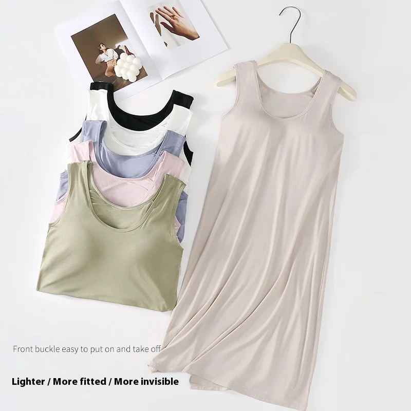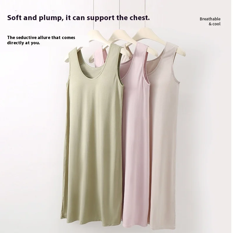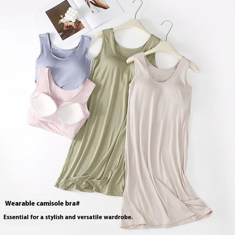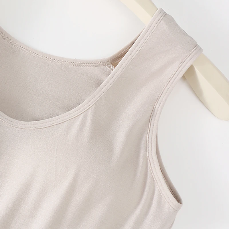 Ladies Plus-Size Seamless Knitting One-Piece Camisole Casual Style Solid Color Sleeveless Vest with Chest Pad
