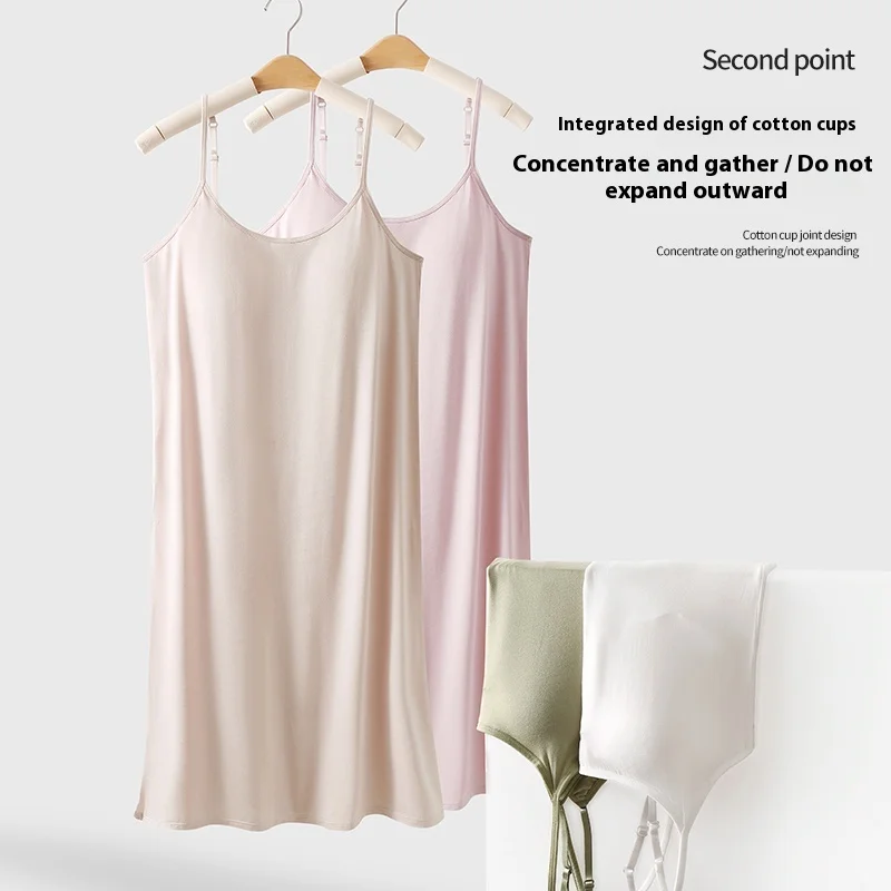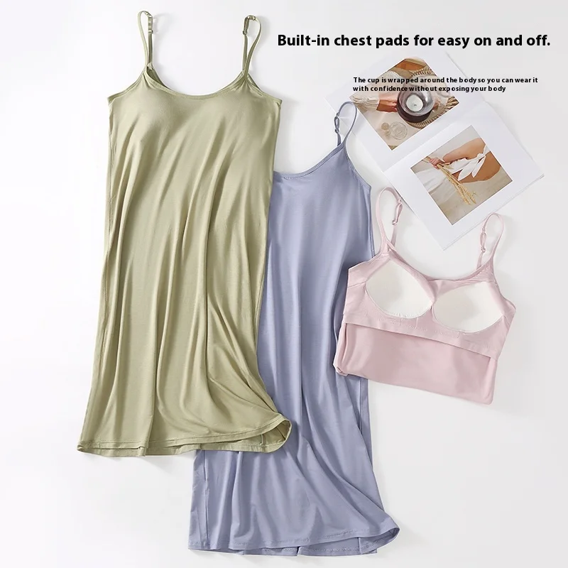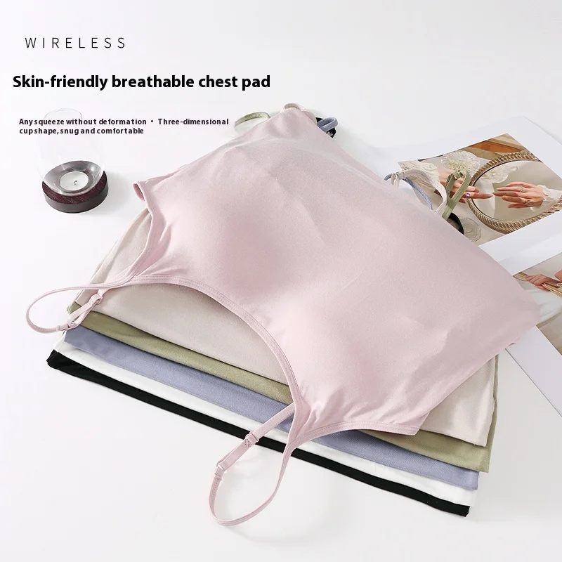 Solid Pattern Seamless Knitted Sling Vest with Integrated Bra Casual Camisoles with Petticoat Chest Pad Inner Sling Vest
