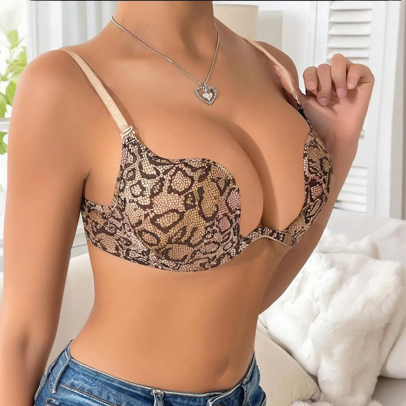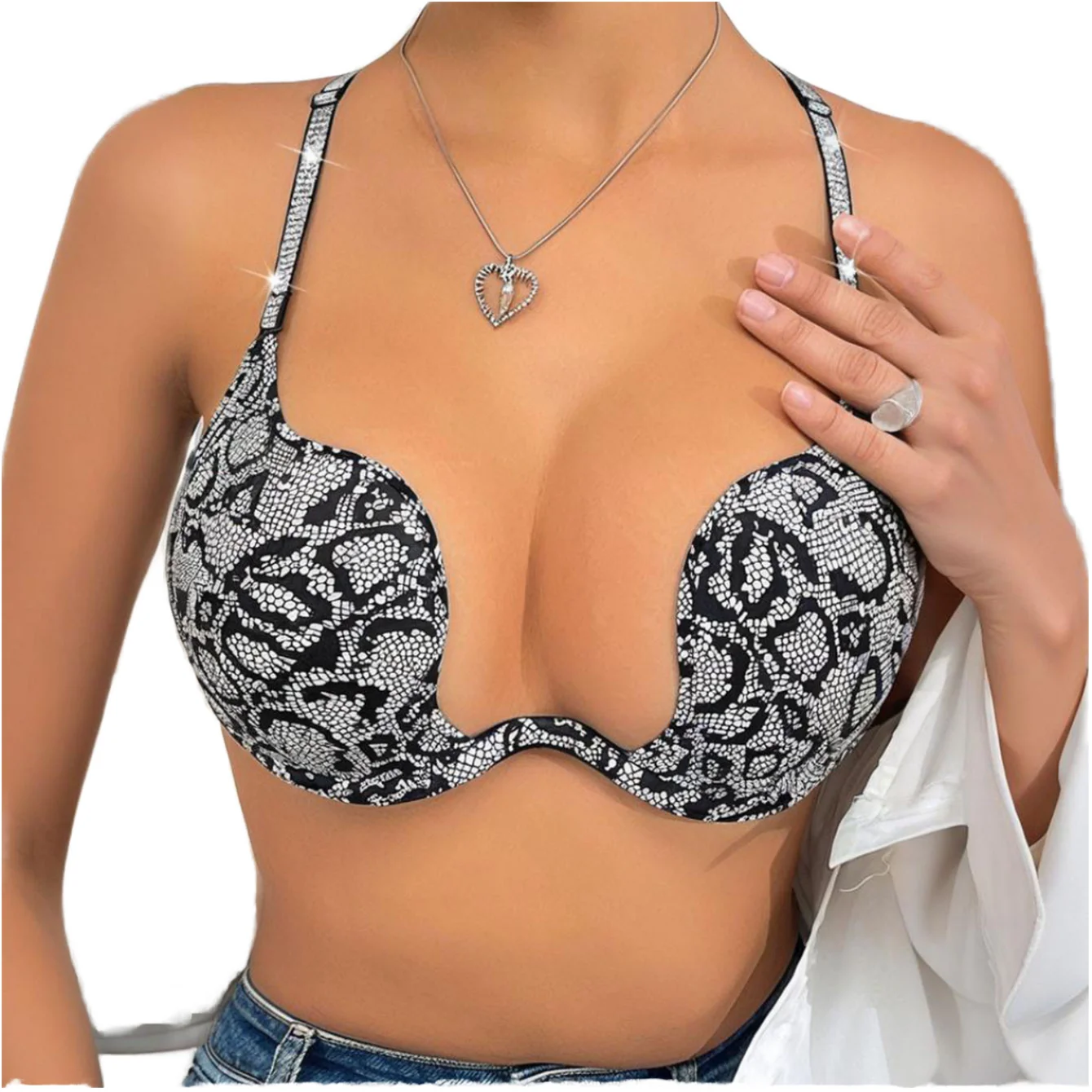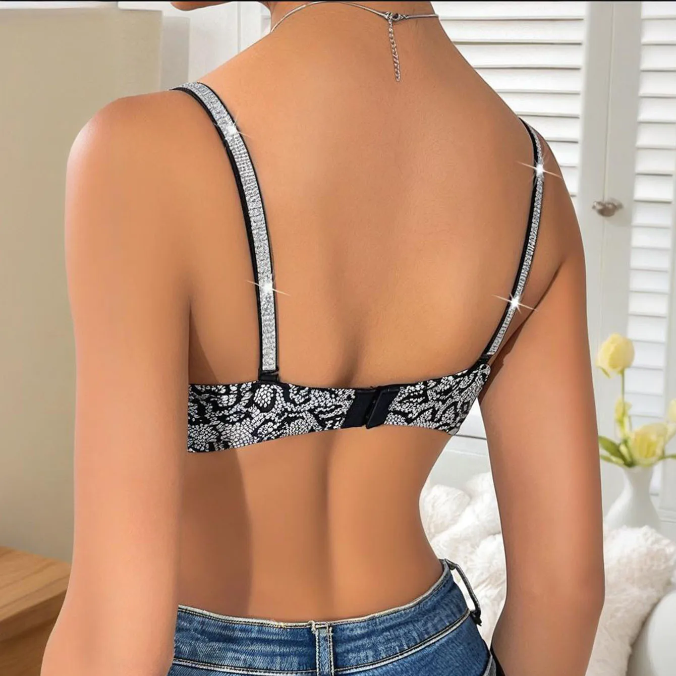 Women's Sexy Woven Solid U-Shaped Thin Wire-Free Bra Soft Steel Ring Upper Support Breathable Anti-Sagging Rhinestone