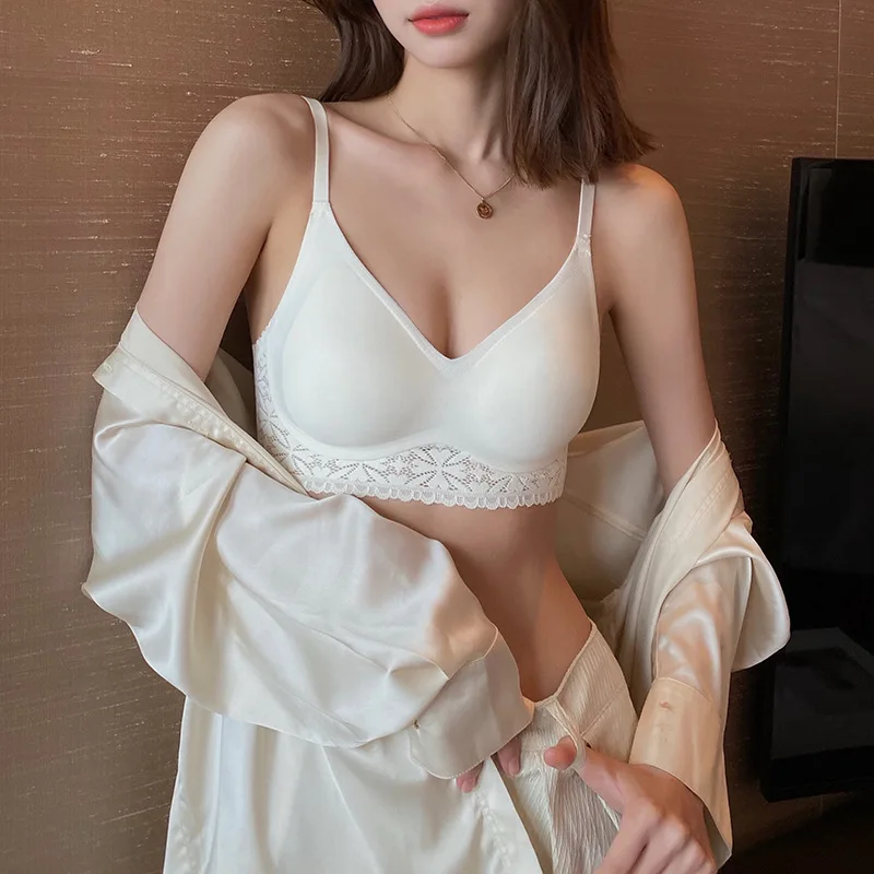Sutia Sem Fio Sem Costura Para Mujer Breathable Knitted Everyday Ice Silk Removable Padded Wireless Jelly Lace Bralette for