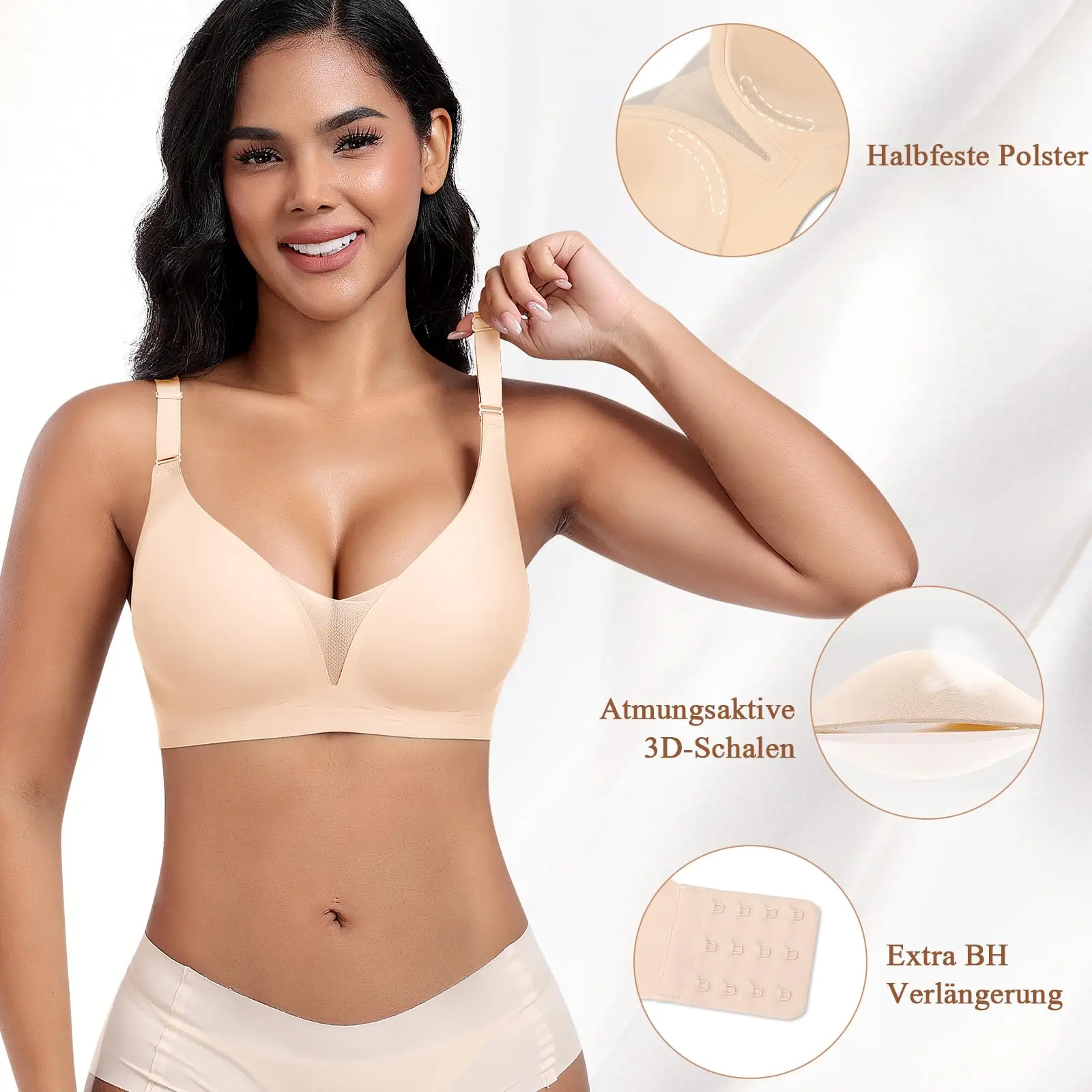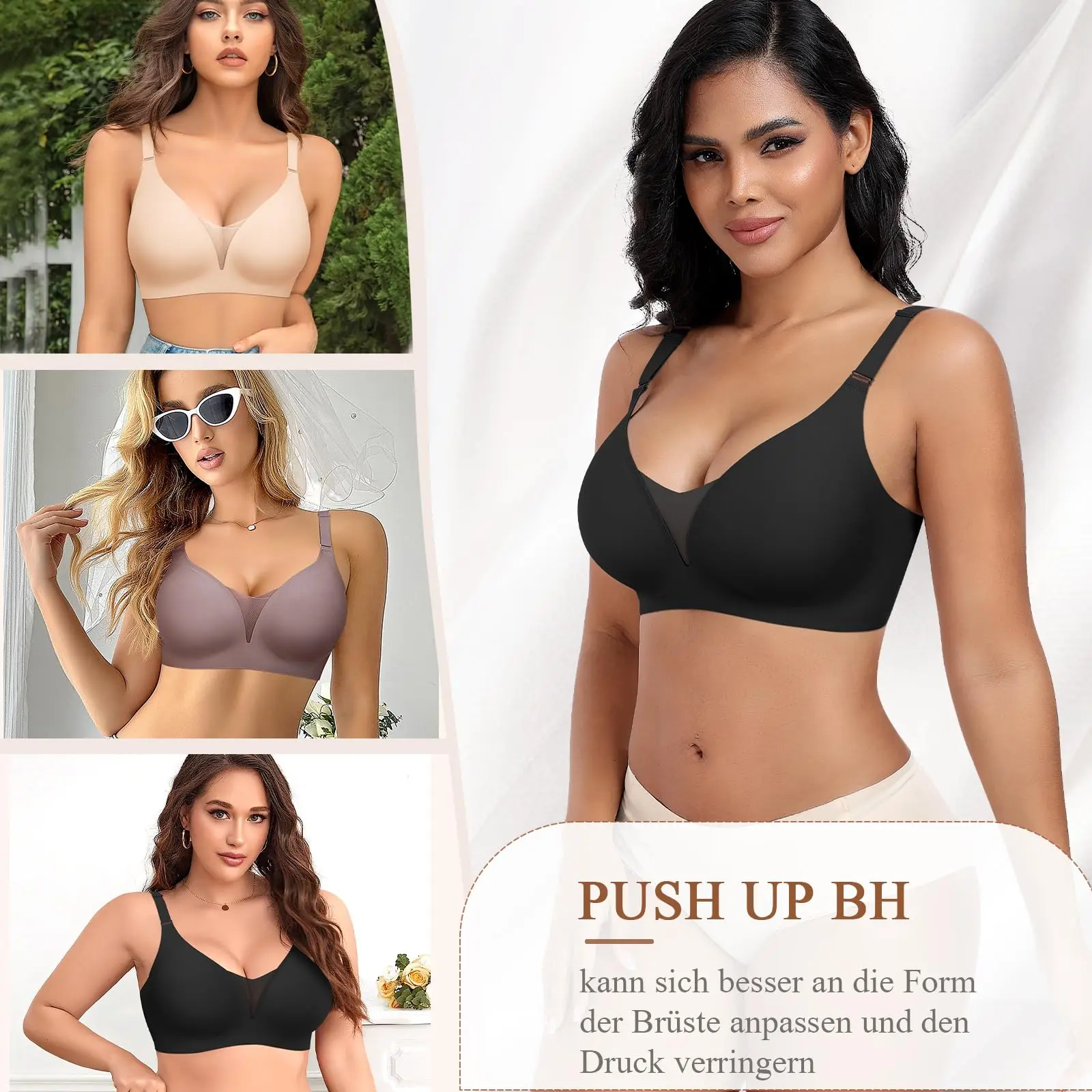 New Product Custom Full Cup Lady V Neck Support and Lift Push up Seamless Sport Padded Smoothing T Shirt Bra No Underwire