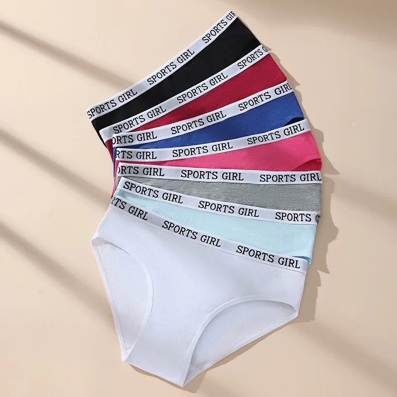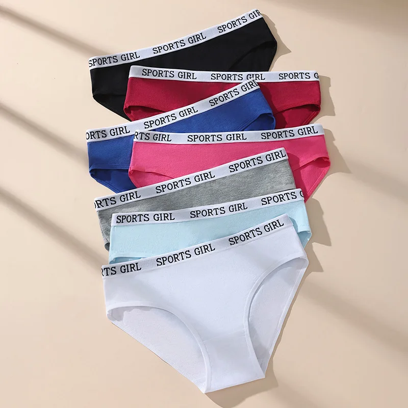 Women's Thin Knitted Cotton Mid-Rise Underwear Letter Belt Adult Fashion Breathable Solid Thong Panty Waist Plain Dyed Sporty