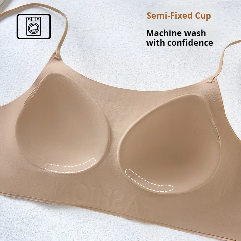 Soft Wire Free One-Piece Seamless Thin Summer Ladies Bras Cross-Shoulder Adjustable Push-Up 3/4 Cup Breathable Brattelle Knitted