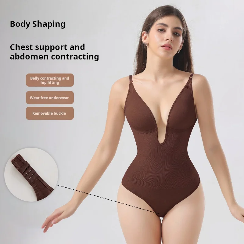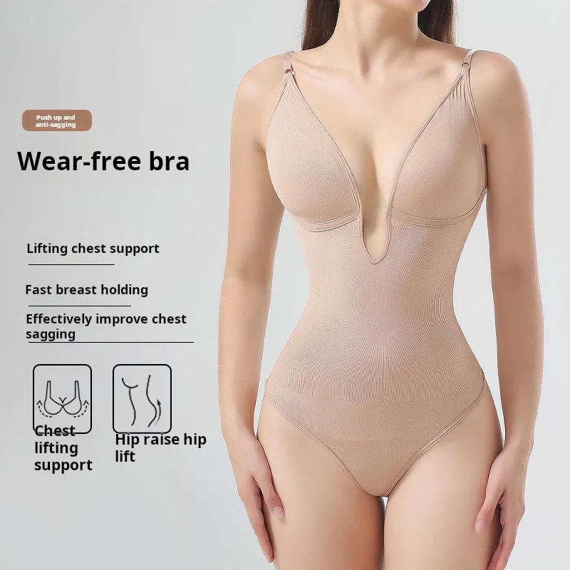 Fashion Women's Body-shaping Jumpsuit with Deep V-neck and Tight Hip Thong Sling Is Comfortable. Women's Seamless Shapewear