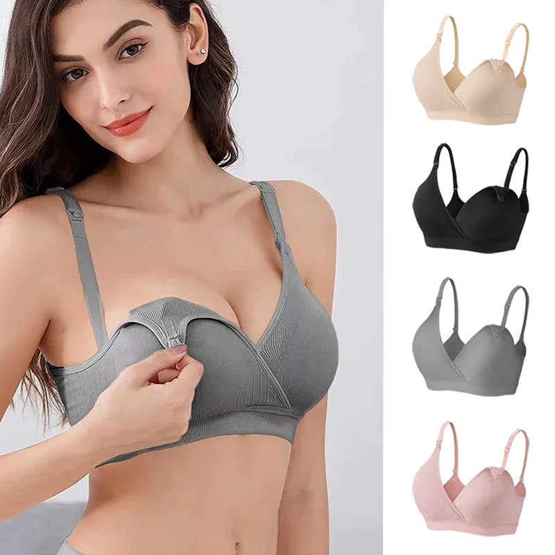 Pregnant Women's Breastfeeding Sleeping Bra-Seamless Solid Knitted High Elasticity Adjustable Strap Sexy Wire-Free Full Cup