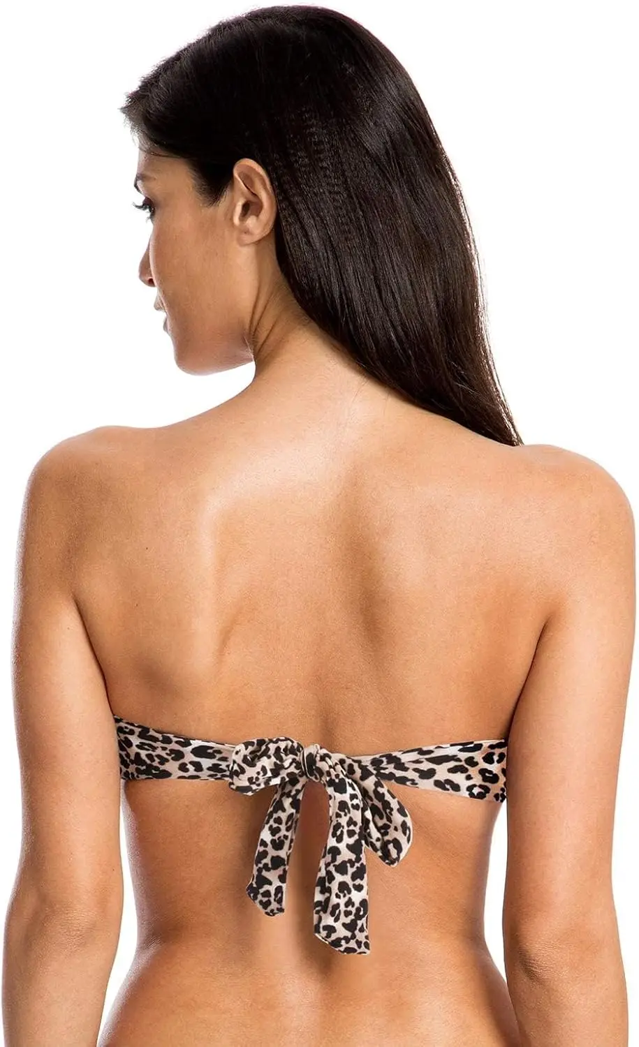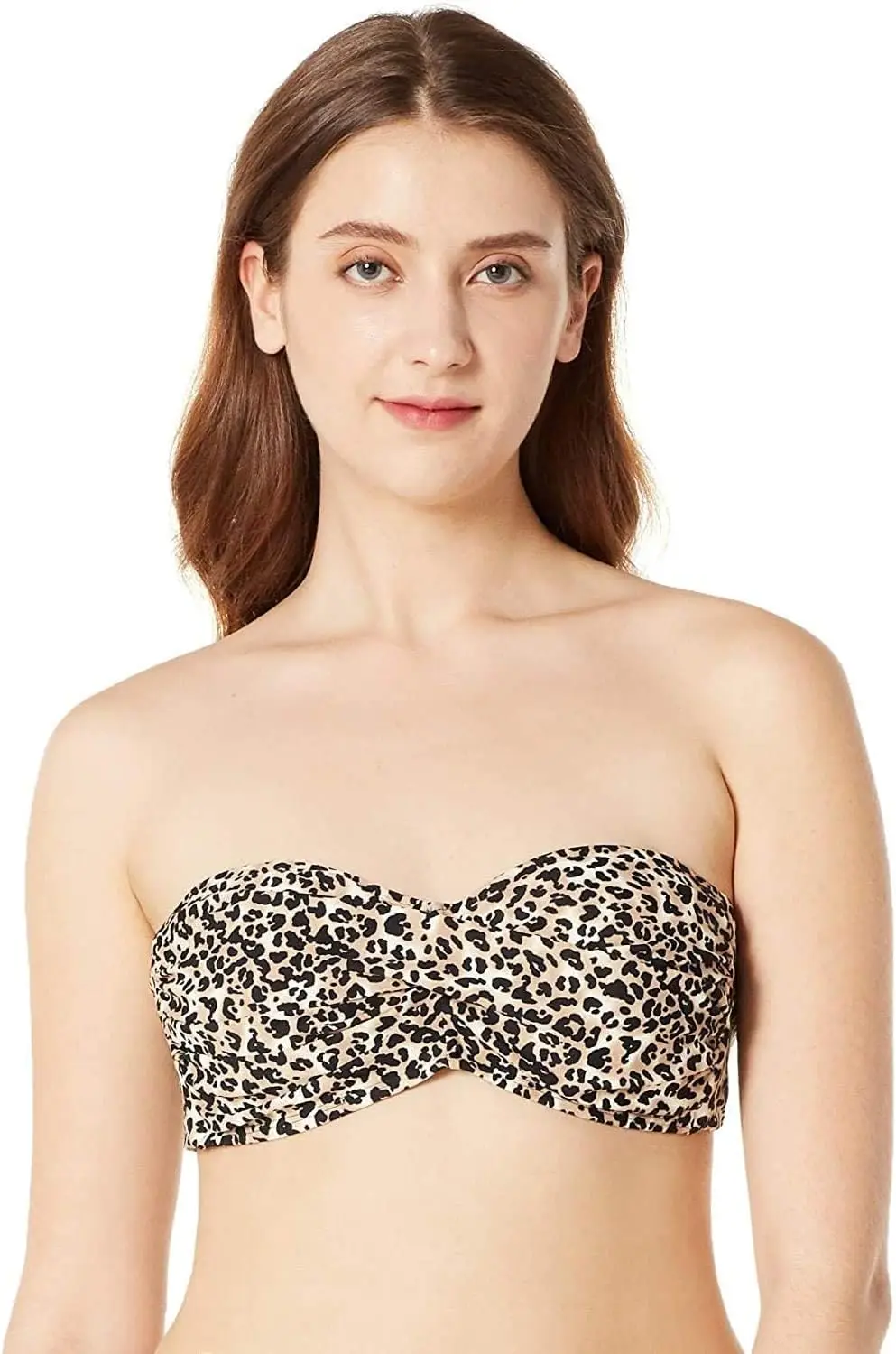 Ocean Blues Women's Strapless Leopard Print 2 Piece Bandeau Bikini Top with Tie Back Chiffon