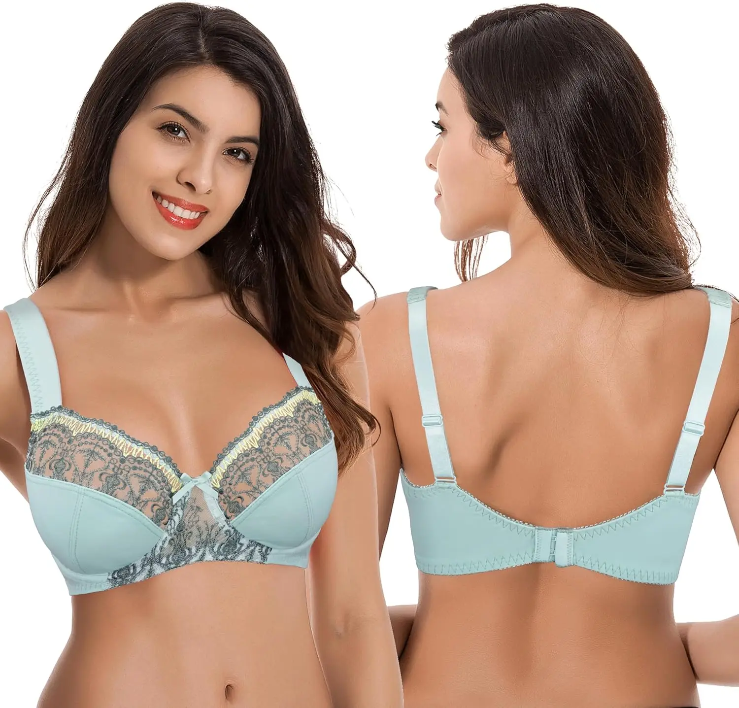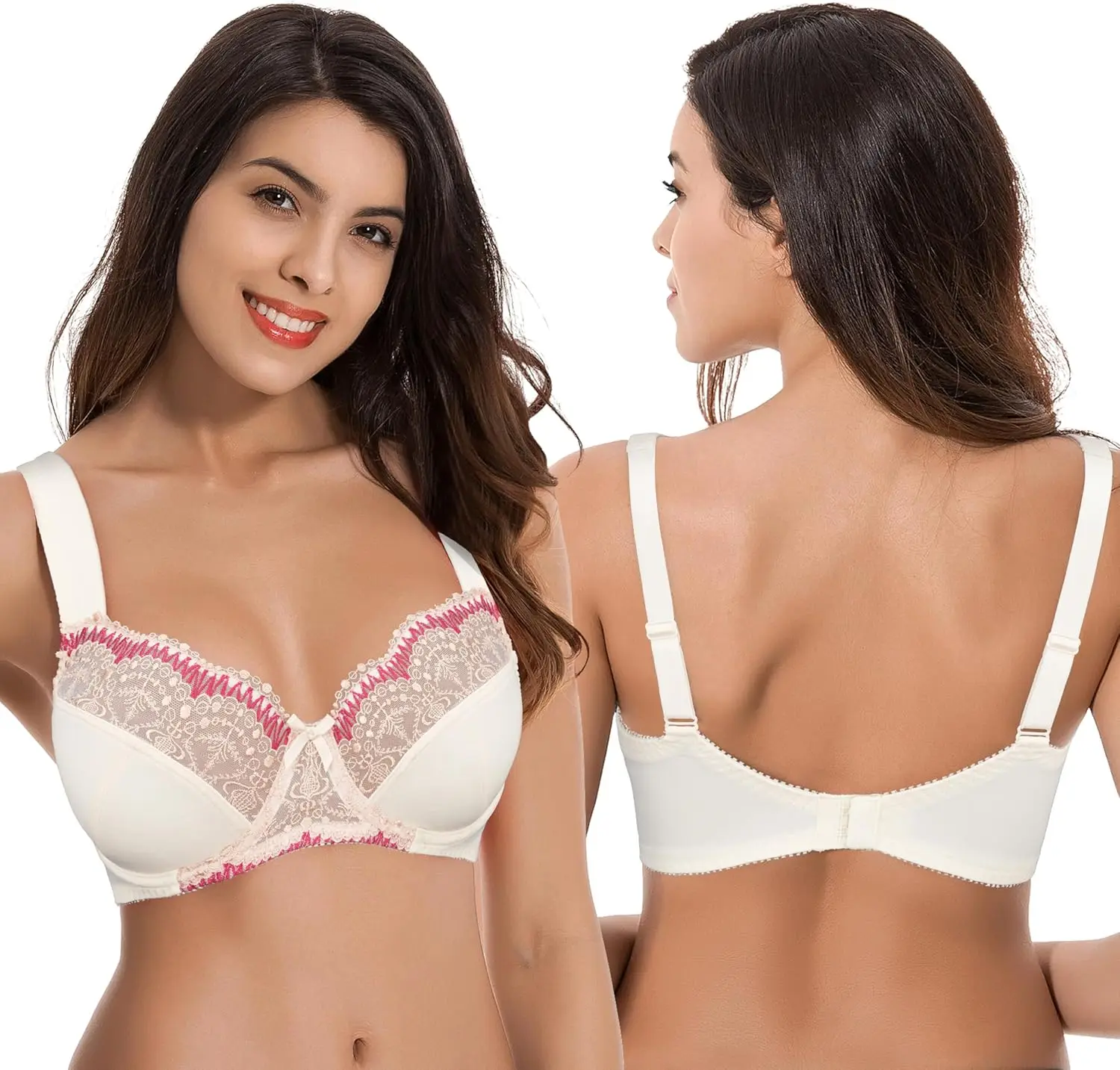 Curve Muse Women's Plus Size Gothic Minimizer Underwire Bra with Lace Embroidery-2 or 3PK