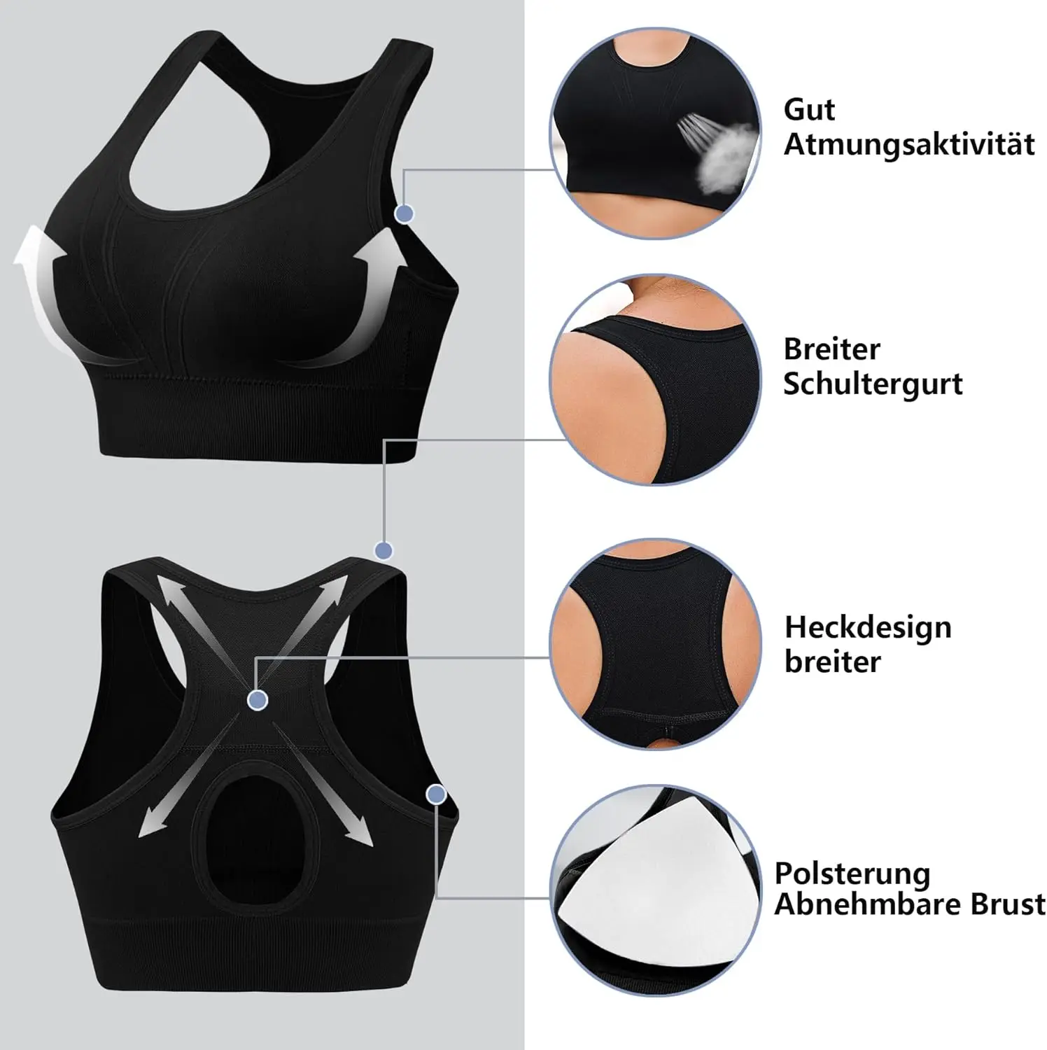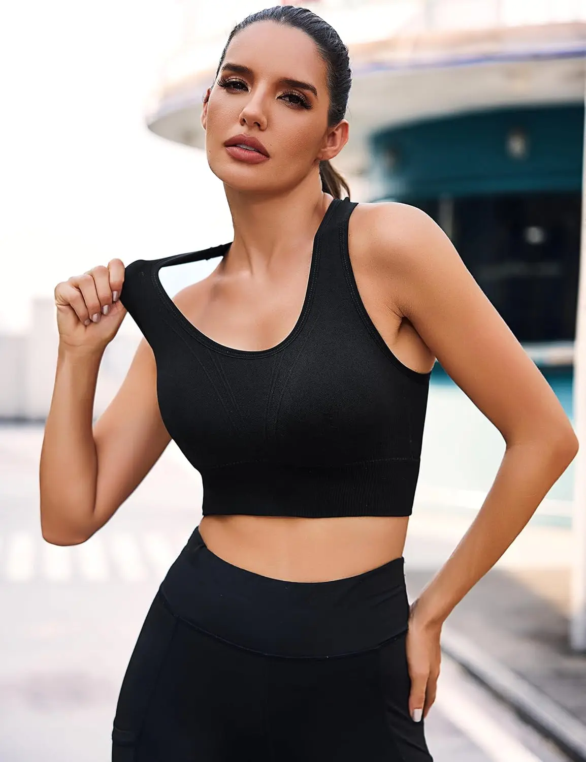 Litherday Women's Breathable High Support Seamless Sports Bra Zero Feel Underwire Removable Padding Soft Rib Yoga Fitness