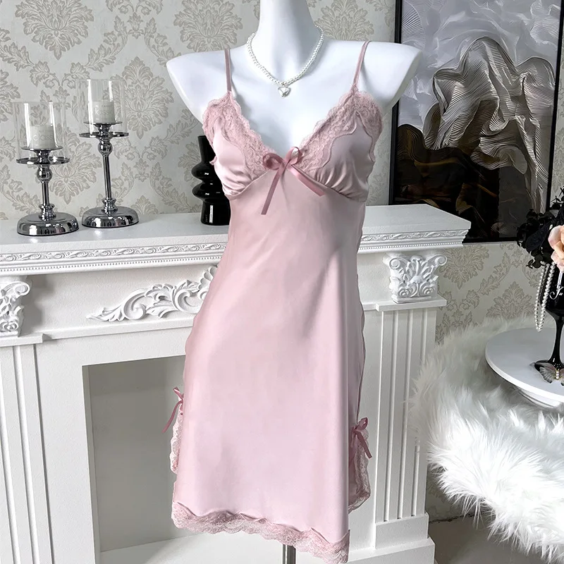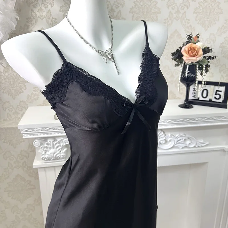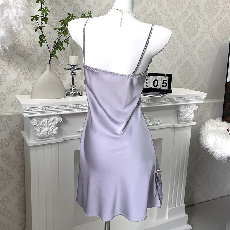 Ice Silk Nightgown for Women Sexy Summer Pajamas High-End French Style Plus Size Breast Sling Elastic Waist Home