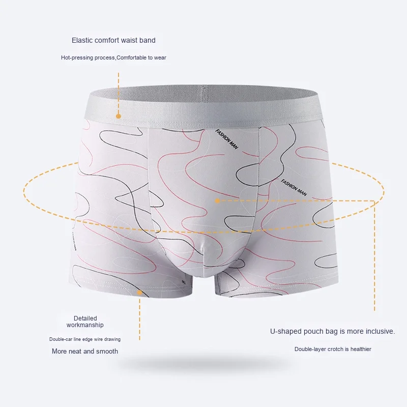New Hot XXL Men's Boxer Briefs Youth Mid-Rise High-Waist Knitted Underwear Large Size Pants Shorts Customizable Logo-4 Pieces