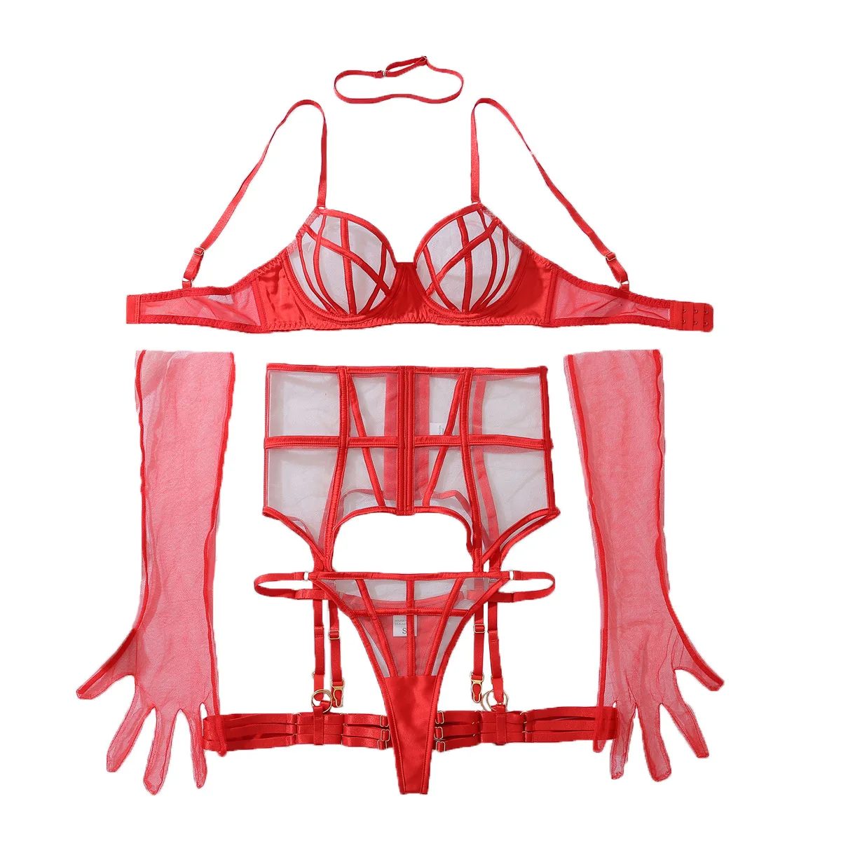 New Women's Sexy Multi-Color Velour Knitted Underwear Set Embroidered Half Slip Mature Style