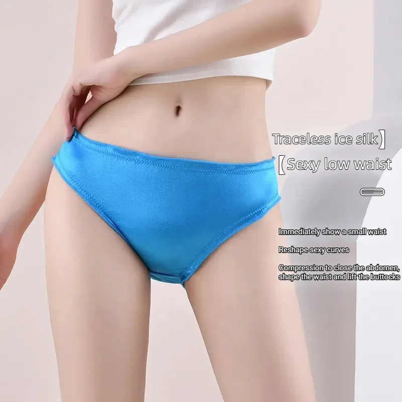 High Quality Women's Ice Silk Satin One Piece Seamless High Waist Briefs Sexy Everyday Knitted Underwear for Women and Girls