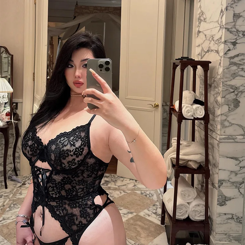 Plus Size Sexy Women's Lace Backless Lingerie Knitted Fabric Half Slips Suit for Night Club 2 Piece MOQ