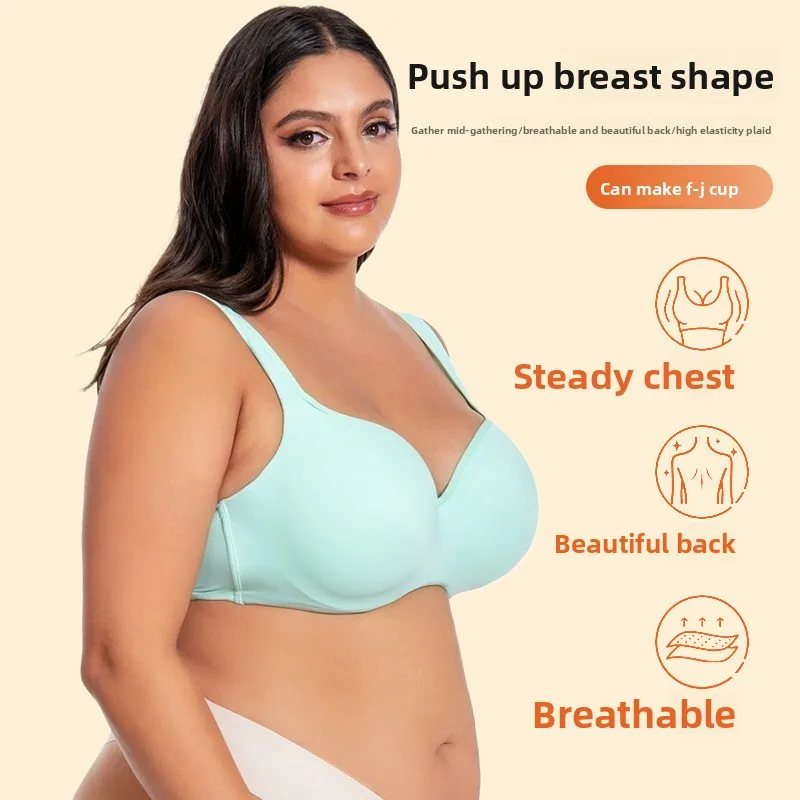 Custom Women's Breathable Push-Up Bra Cool Sexy European American Style Large Bust Minimizing Plus Size Thin Cup Side Support