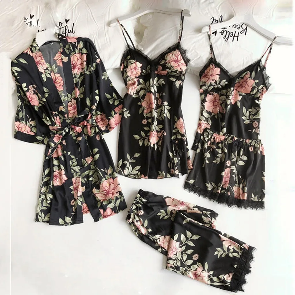 Wholesale Manufactured Women's Romantic Camisole-Style Pajama Loose Comfortable Lace Five-Piece Loungewear Lingerie Front
