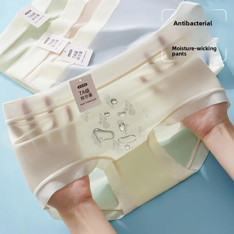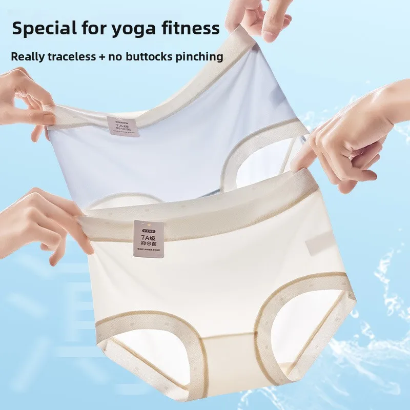 Women's Mid-Waist Sexy Seamless Nude Underwear Quick-Dry Comfortable Thin Ice Silk Panties with 7A Antibacterial Mask Made Nylon