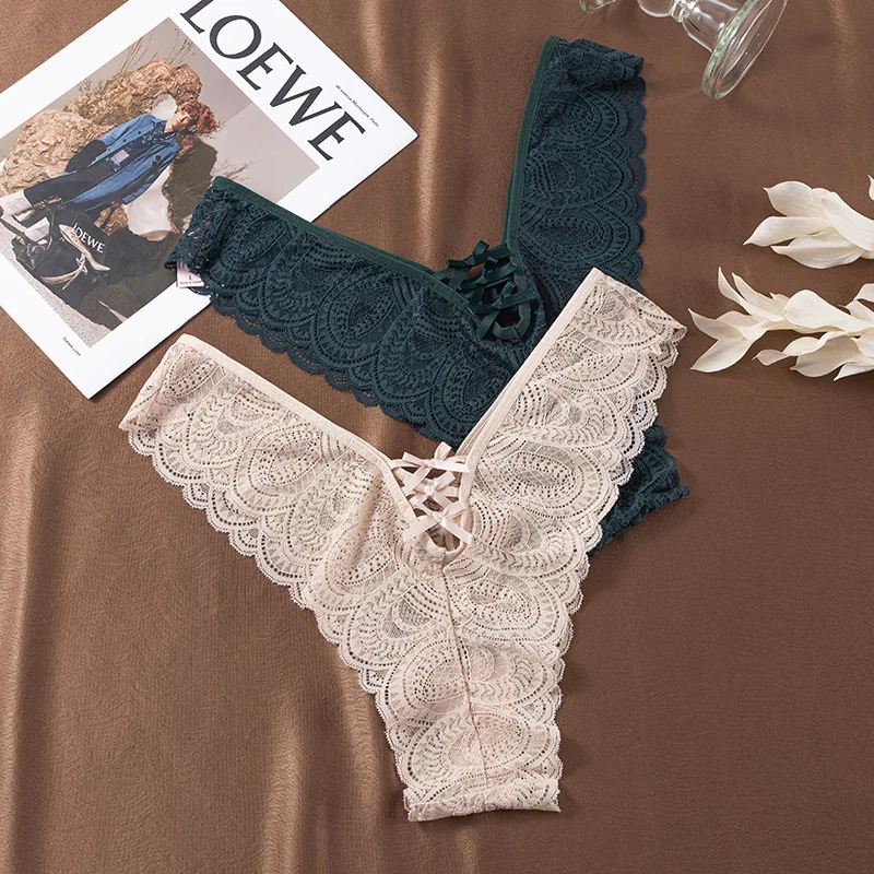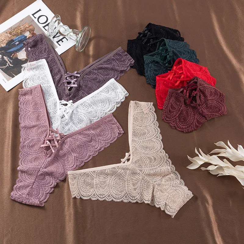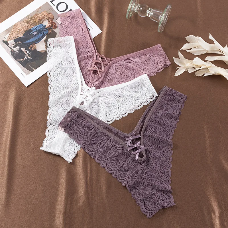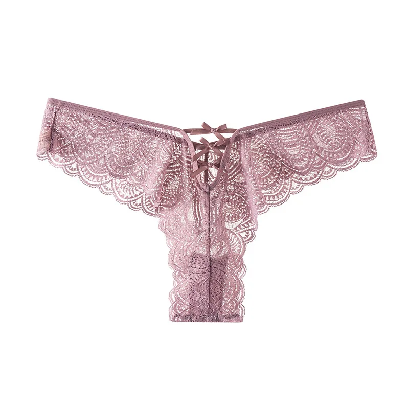 Lace Knitted Nylon Sexy Transparent Thin Thong Briefs Women's Anti-Bacterial Low-Rise Fun T Pants